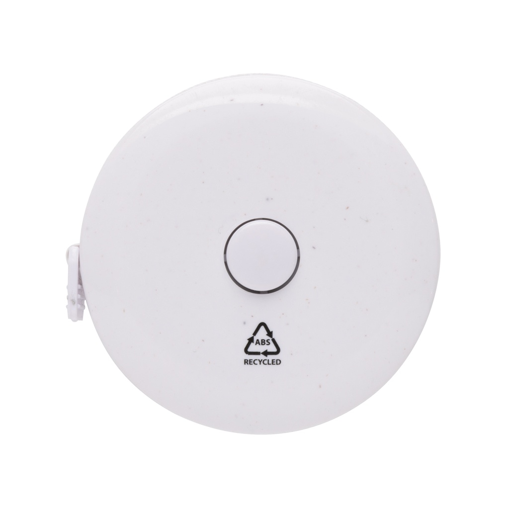 Лента из переработанного пластика длиной 1,5 м/60 дюймов с кнопкой возврата для фитнеса и моды. Корпус изготовлен из переработанного АБС-пластика и стекловолокна, сертифицированного RCS. Общее содержание переработанных материалов: 64% от общего веса изделия. Сертификация RCS гарантирует полностью сертифицированную цепочку поставок переработанных материалов. Лента имеет ширину 8 мм и вытягивается кнопкой. Упакована в упаковку FSC® mix.