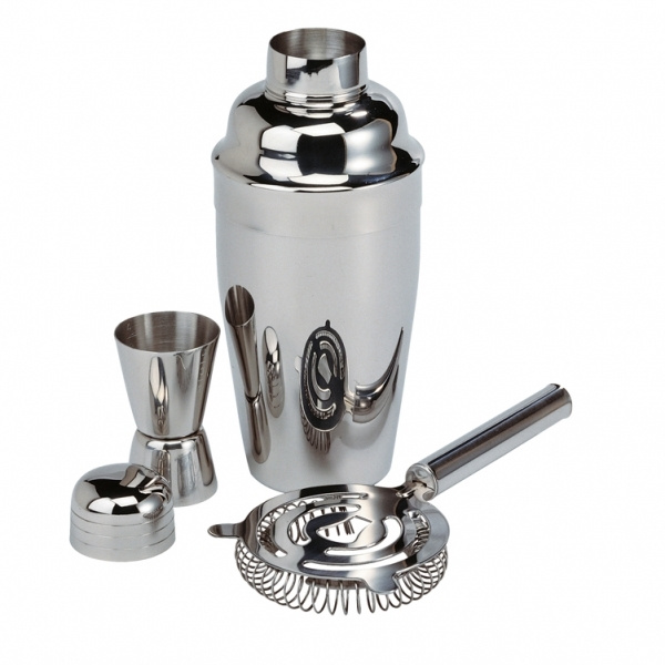 Взболтать, но не размешать! С этим высококачественным хромированным набором для коктейлей вы будете смешивать как профессиональный бармен. В набор входит 1 шейкер, 1 мерный кувшин и 1 стрейнер с 2 подставками. Благодаря своей спирали стрейнер соответствует размеру стакана, так что все крупные кусочки фруктов или льда не попадают в стакан при наливании. Нержавеющая нержавеющая сталь делает качественные стрейнеры неразрушимыми. Мы разместим ваш логотип с помощью лазерной гравировки на шейкере. Каждый набор упакован в подарочную коробку.