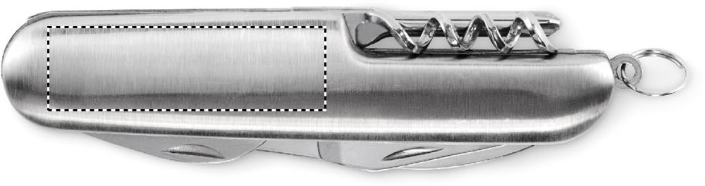 Recycled aluminium multi-function pocket knife. 5 functions: large blade, bottle opener, screwdriver, corkscrew and can opener