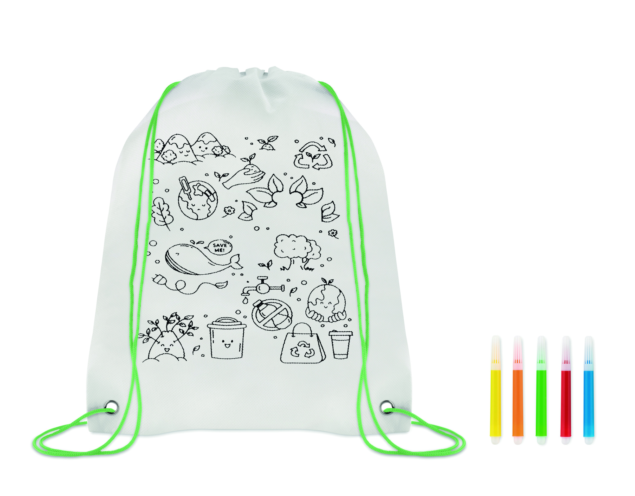 Нетканый мешок на шнурке с 5 маркерами. 80 гр / м².