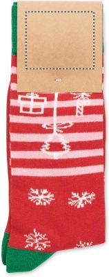 Пара тематических носков из 75% хлопка, 23% переработанного полиэстера RPET и 2% спандекса. Поставляются в подарочной упаковке. Размер M = 38-42.