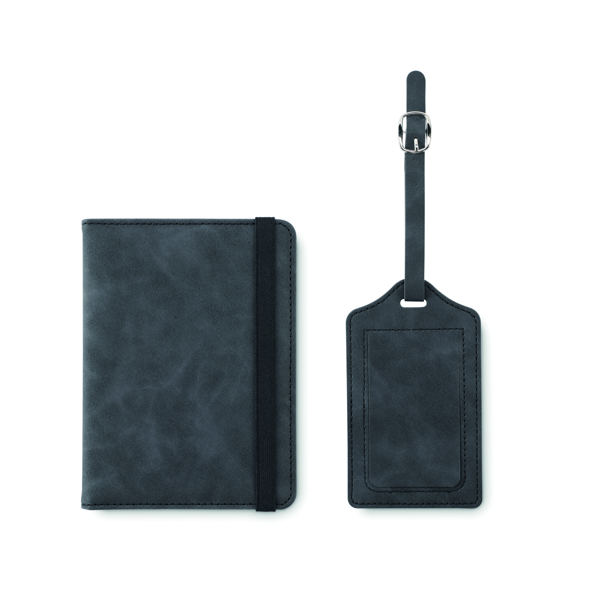Set of passport holder and luggage tag in PU. Presented in gift box.