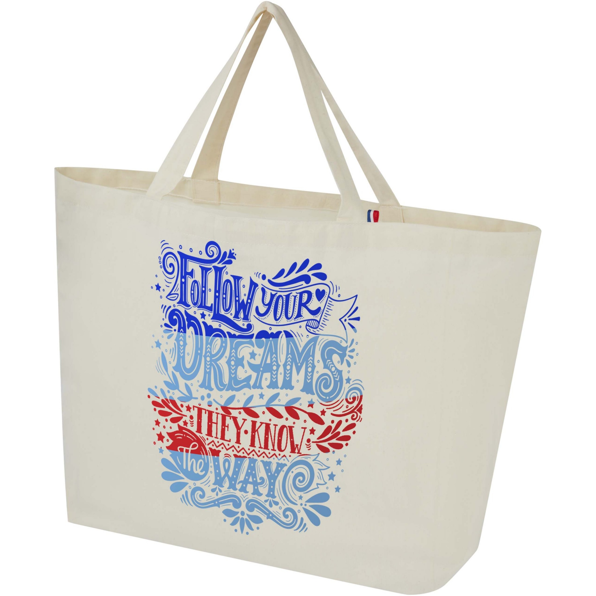 Эко-сумка разработана таким образом, чтобы выдержать использование в повседневной жизни и подходит для переноски тяжелых книг или продуктов. Сумка изготовлена из 100% переработанных материалов, что делает ее более экологичным выбором. Методы печати, доступные для этой эко-сумки, сертифицированы по стандарту GRS, что гарантирует прозрачность и сертификацию цепочки поставок. Смесь переработанного хлопка/полиэстера плотностью 200 г/м² обеспечивает долговечность и надежность и позволяет переносить вес до 14 кг.