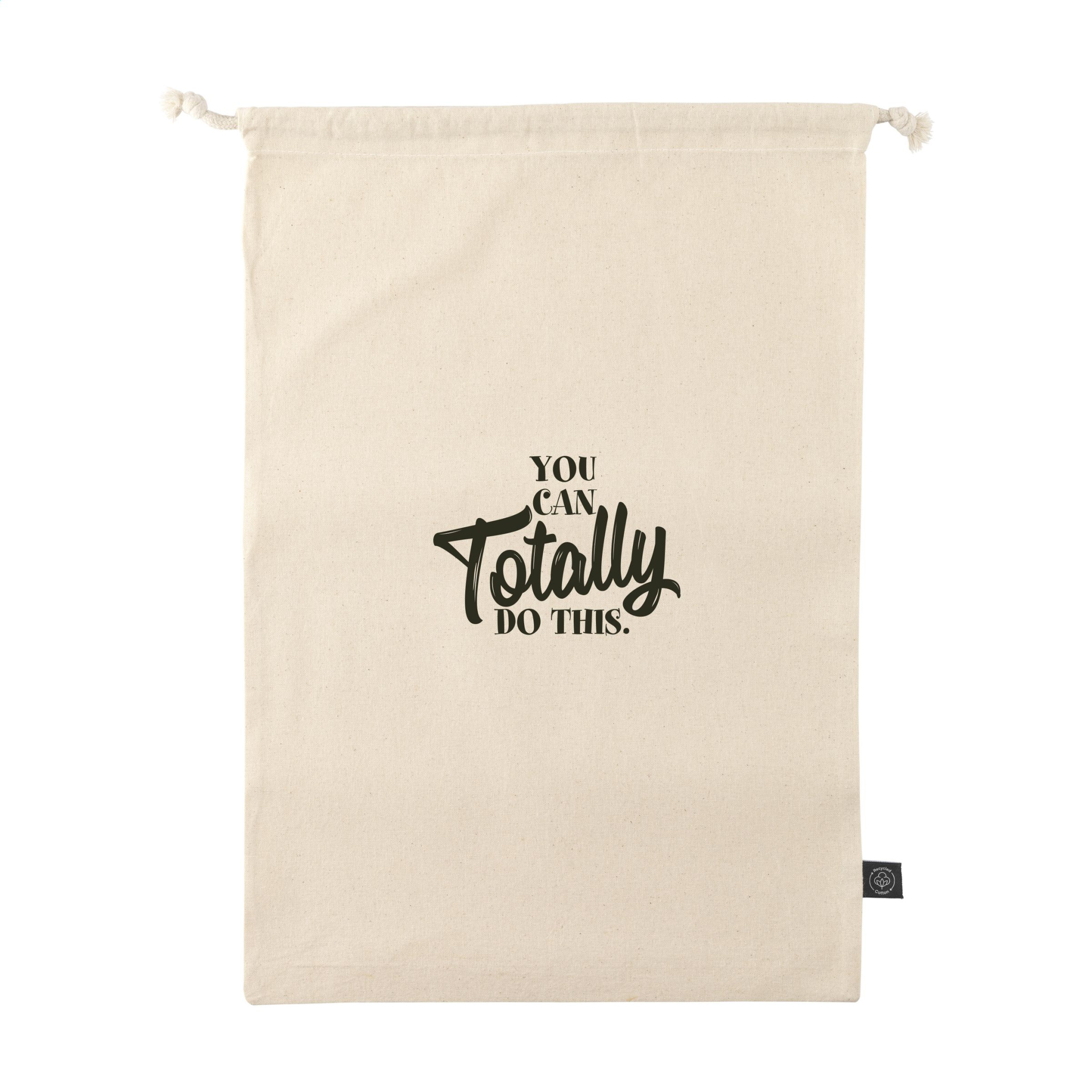 Лого трейд бизнес-подарки фото: Подарочный мешочек из натурального переработанного хлопка GRS (150 г/м²) L