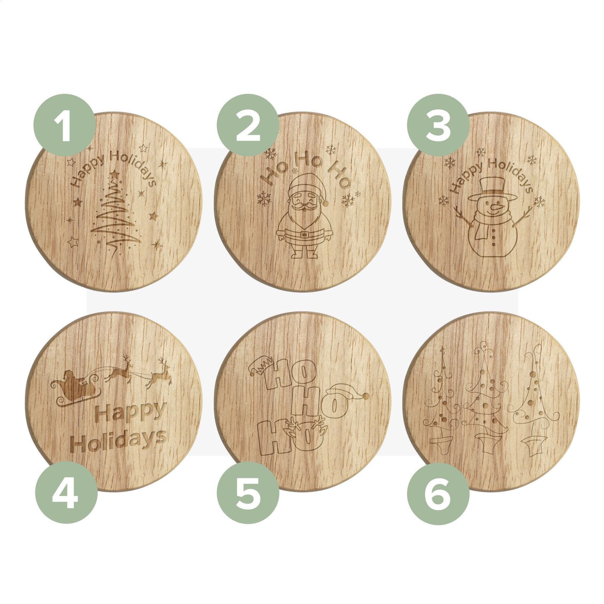 Круглая открывалка для бутылок из бука. - Этот продукт напечатан со стандартным рождественским дизайном. Выбор из 6 различных дизайнов, как показано на изображениях. Изменить дизайн невозможно.