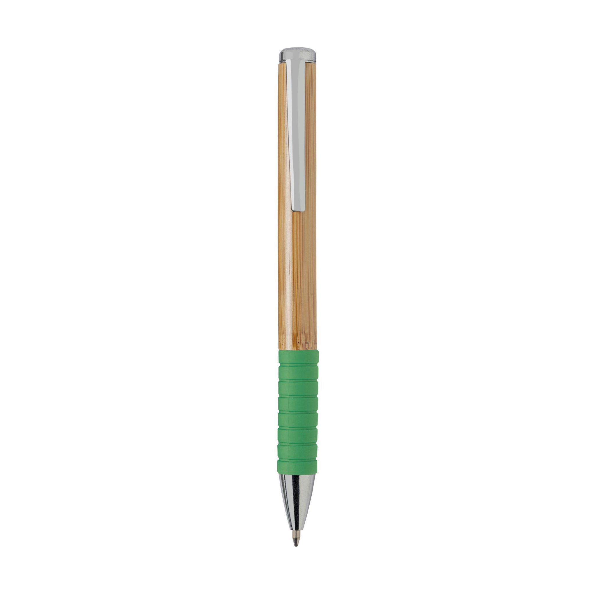 WoW! Шариковая ручка с синими чернилами, бамбуковым держателем, металлическим зажимом, системой поворота-клика и цветной резиновой нескользящей ручкой. Для экологичного впечатления.