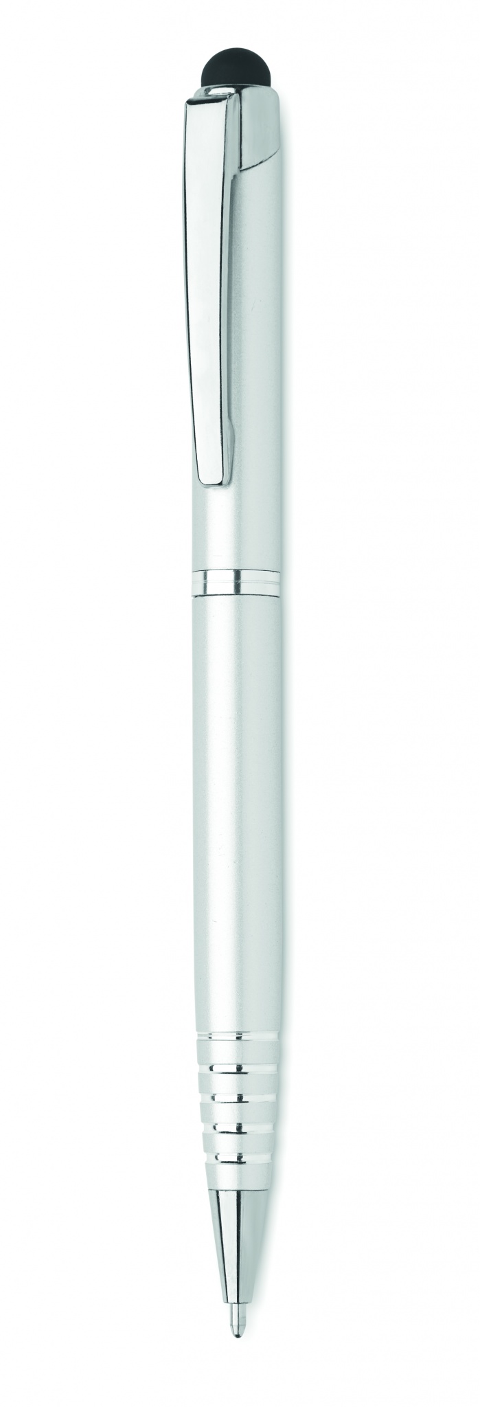 Шариковая ручка из переработанного алюминия со стилусом. Синие чернила.
