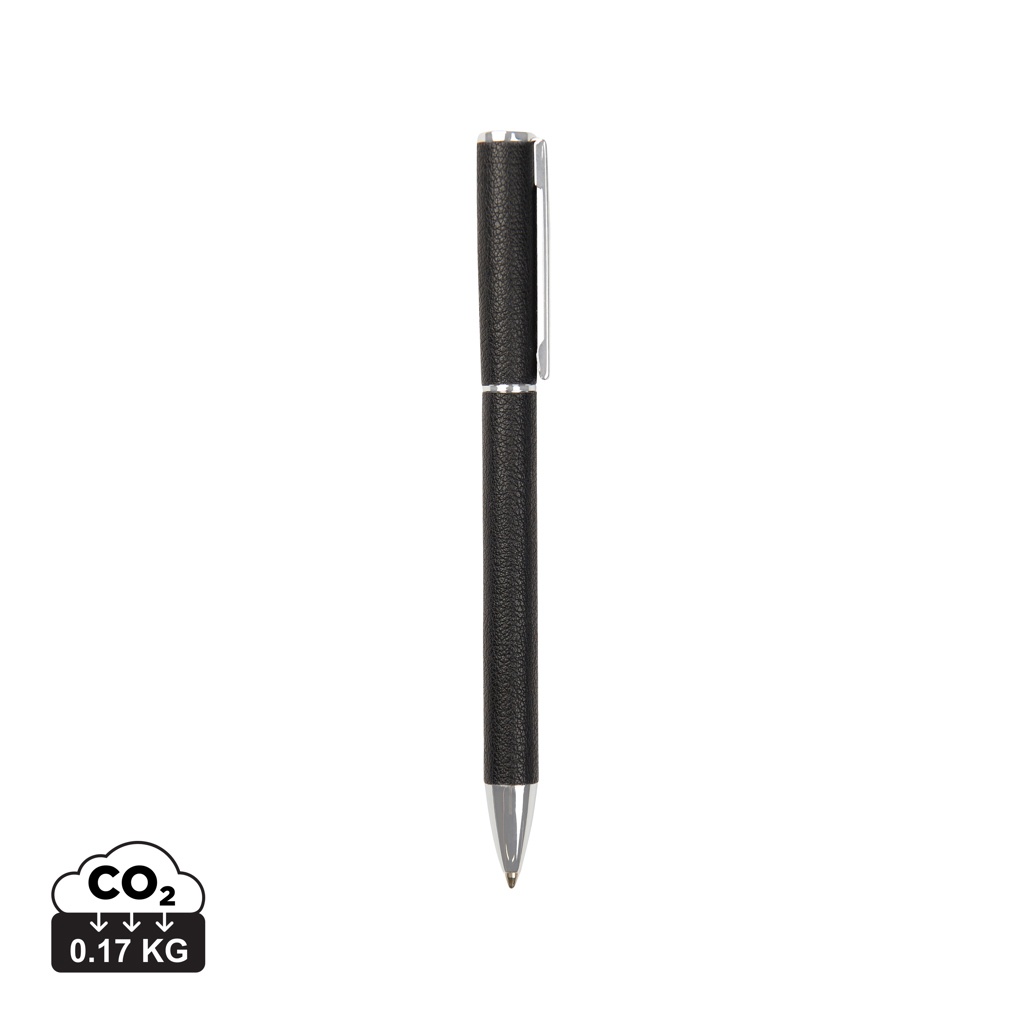 Элегантный пишущий инструмент с поворотным механизмом и синими чернилами на основе документов, обеспечивающий длину письма около 1200 метров и ширину письма 1,0 мм. Изготовлен из переработанного алюминиевого корпуса, латунных компонентов и полиуретанового материала. Серия Timo предлагает минималистские настольные принадлежности, изготовленные из переработанных материалов, сертифицированных RCS, сочетая элегантный дизайн с эстетикой современного рабочего места. Сертификация RSC, сертифицированная RCS (Recycled Claim Standard), гарантирует, что вся цепочка поставок переработанных материалов сертифицирована. Общее содержание переработанных материалов основано на общем весе продукта. Этот продукт содержит 27% переработанного алюминия, сертифицированного RCS.
