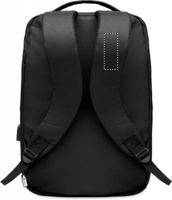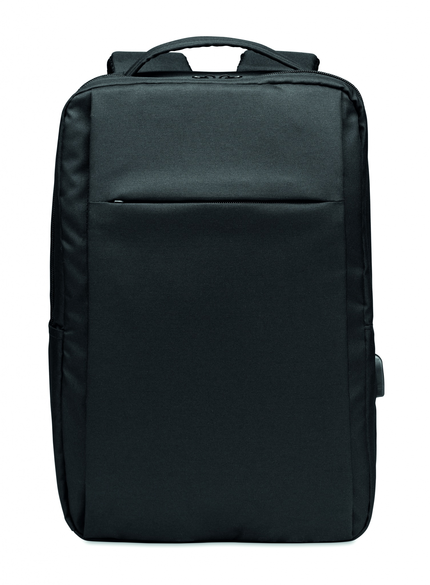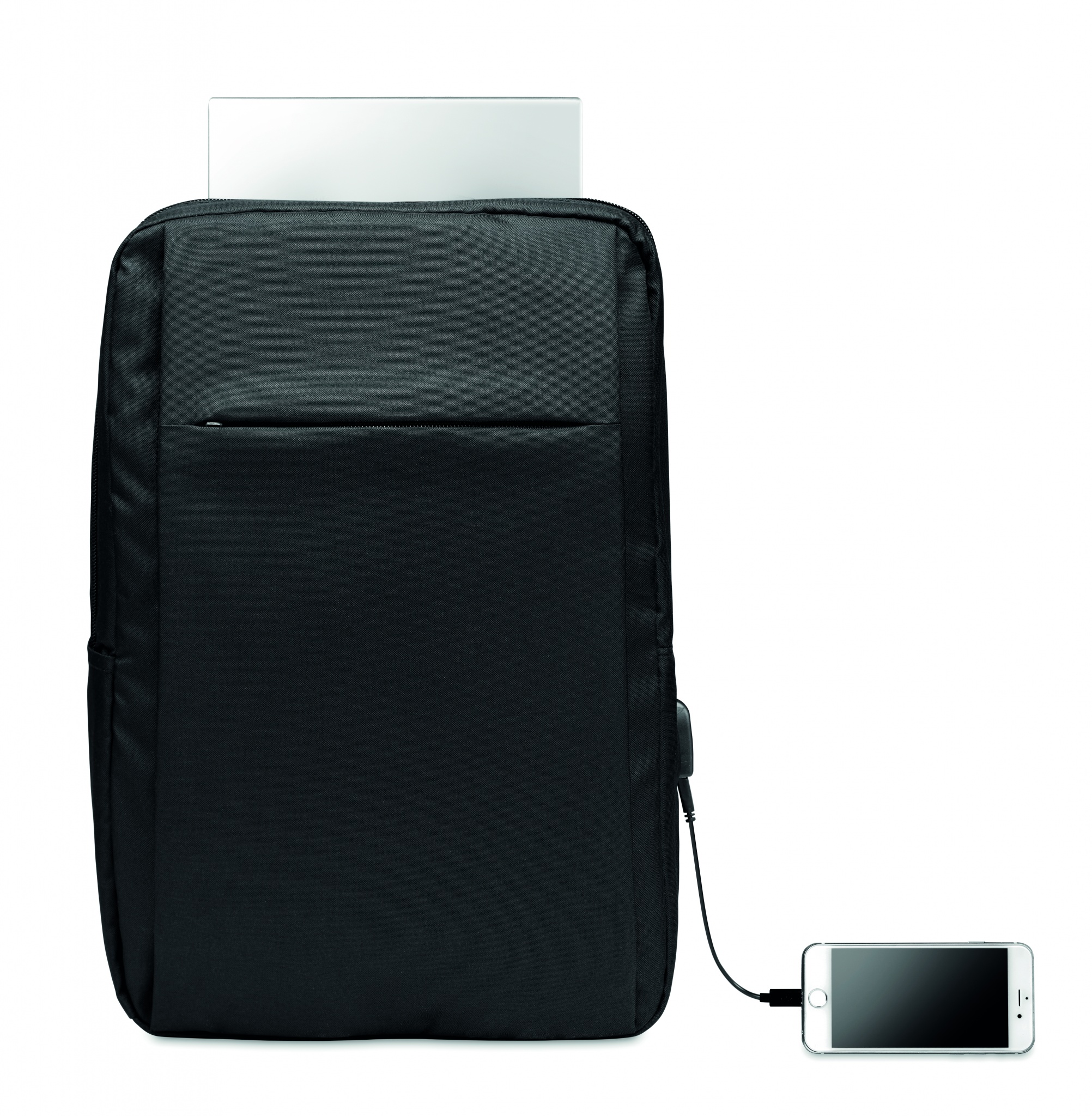 Рюкзак для ноутбука из RPET 300D с мягким плечевым ремнем. Основное внутреннее отделение для 15-дюймового ноутбука. В комплекте USB-кабель для подзарядки.