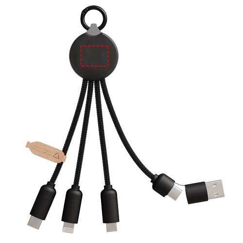 Зарядный кабель 5-в-1 с 3 разъемами (Type-C, Android, iPhone) и шнурами из rPET (изготовленного из переработанных пластиковых бутылок). Благодаря двойному входу USB-A + USB-C кабель на 100 % совместим с новейшими компьютерами на рынке (USB-C). Отделка с эффектом металла на торцевых крышках. Кабель может заряжать до 3 устройств одновременно. Поставляется в перерабатываемом конверте и карточке из переработанной бумаги.