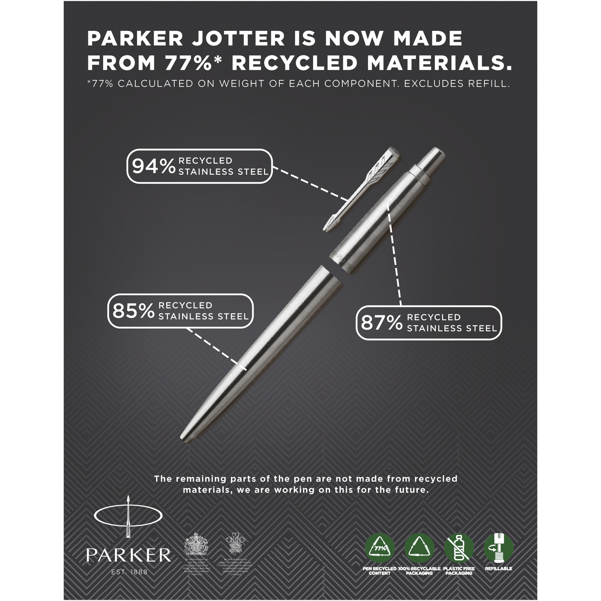 Ручка Jotter является подлинной иконой дизайна последние 60 лет. Завидные цвета и узнаваемая форма делают Jotter самой популярной ручкой Parker, унаваемой по ее характерному клику. Включает подарочную коробку Parker. Предлагается с одним запасным стержнем QuinkFlow. Эксклюзивный дизайн.