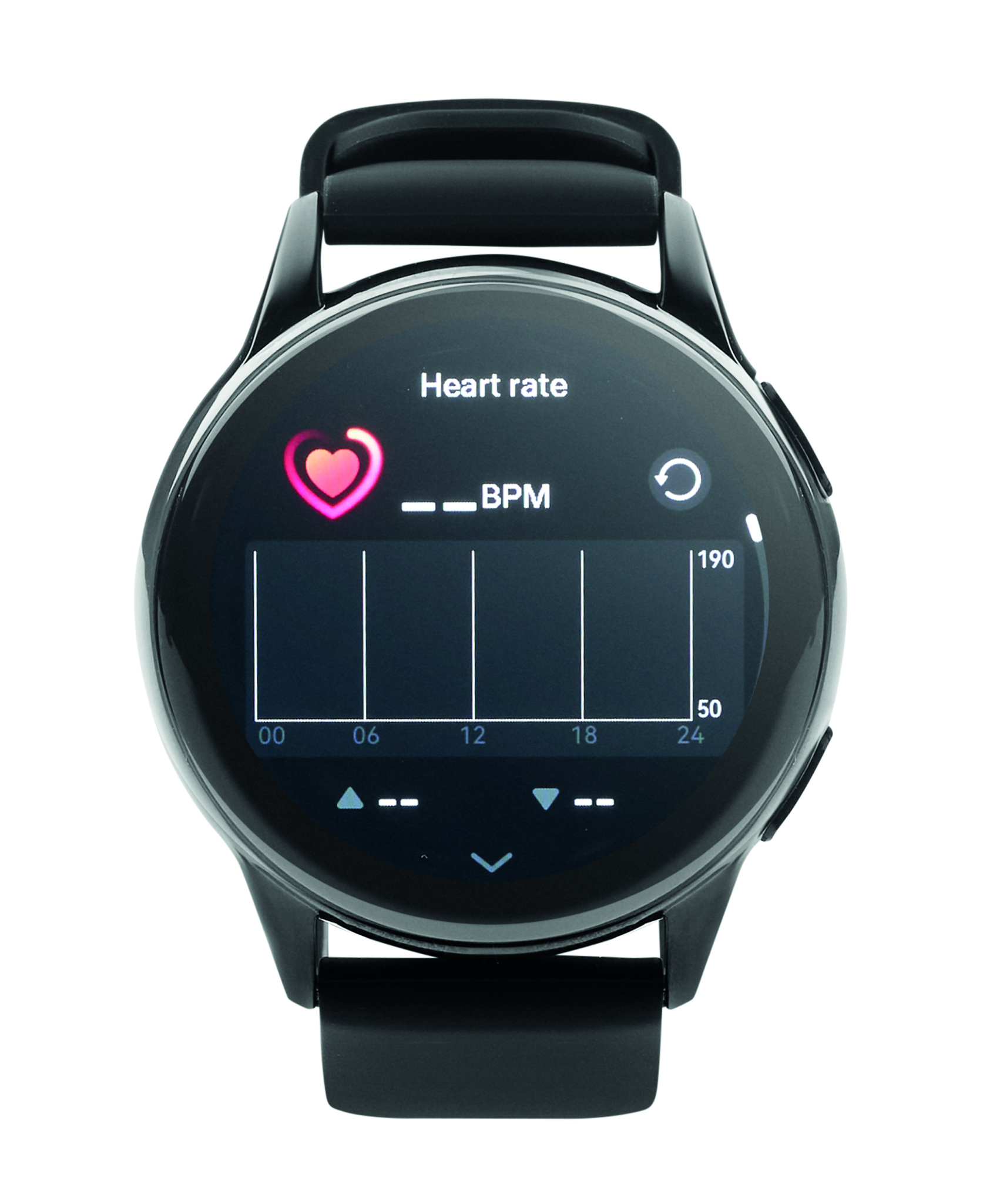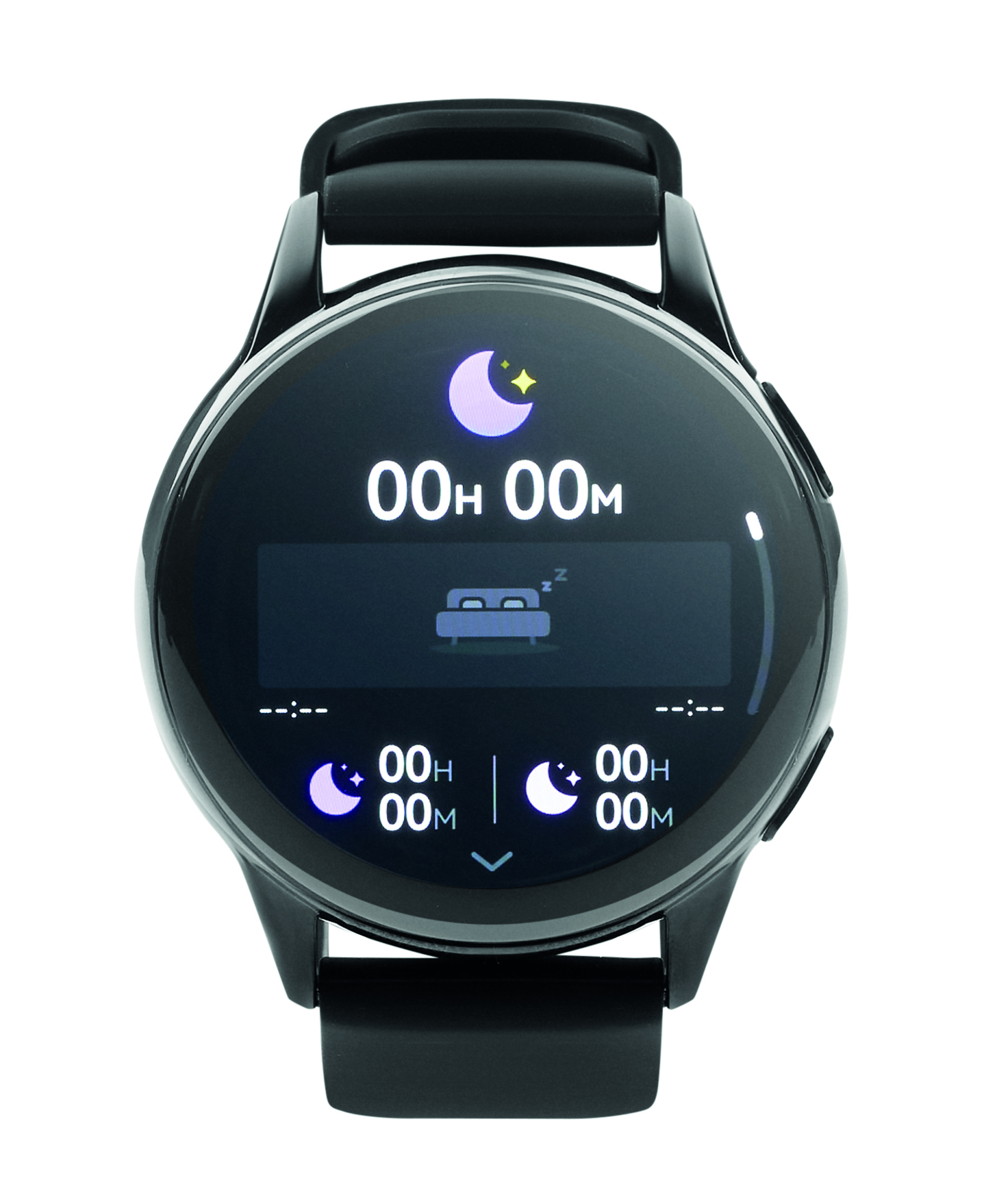 IP68 waterproof wireless smartwatch in zinc alloy with silicone strap. 1.32 inch AMOLED touch screen. Rechargeable Li-Pol 300 mAh battery. Requires a free app (FitCloudPro available in both iOS and Android).