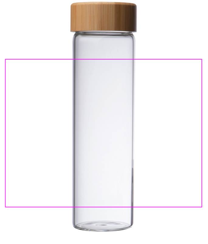 Стеклянная бутылка с бамбуковой крышкой и емкостью 500 мл. На крышке будет выгравирован ваш логотип.