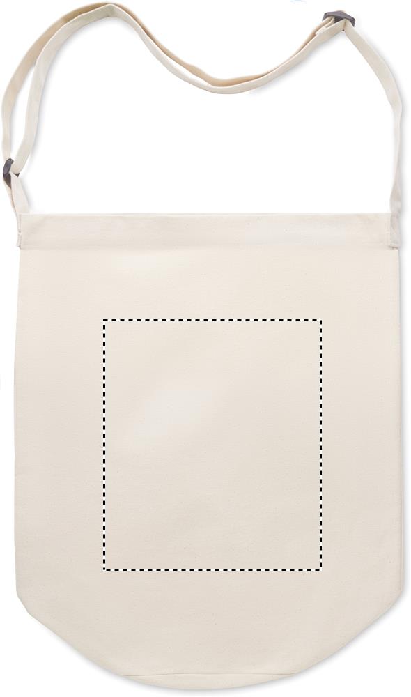 Холщовая сумка на длинном регулируемом плечевом ремне с большим передним карманом на застежке. Есть внутренний карман. 270 гр/м².