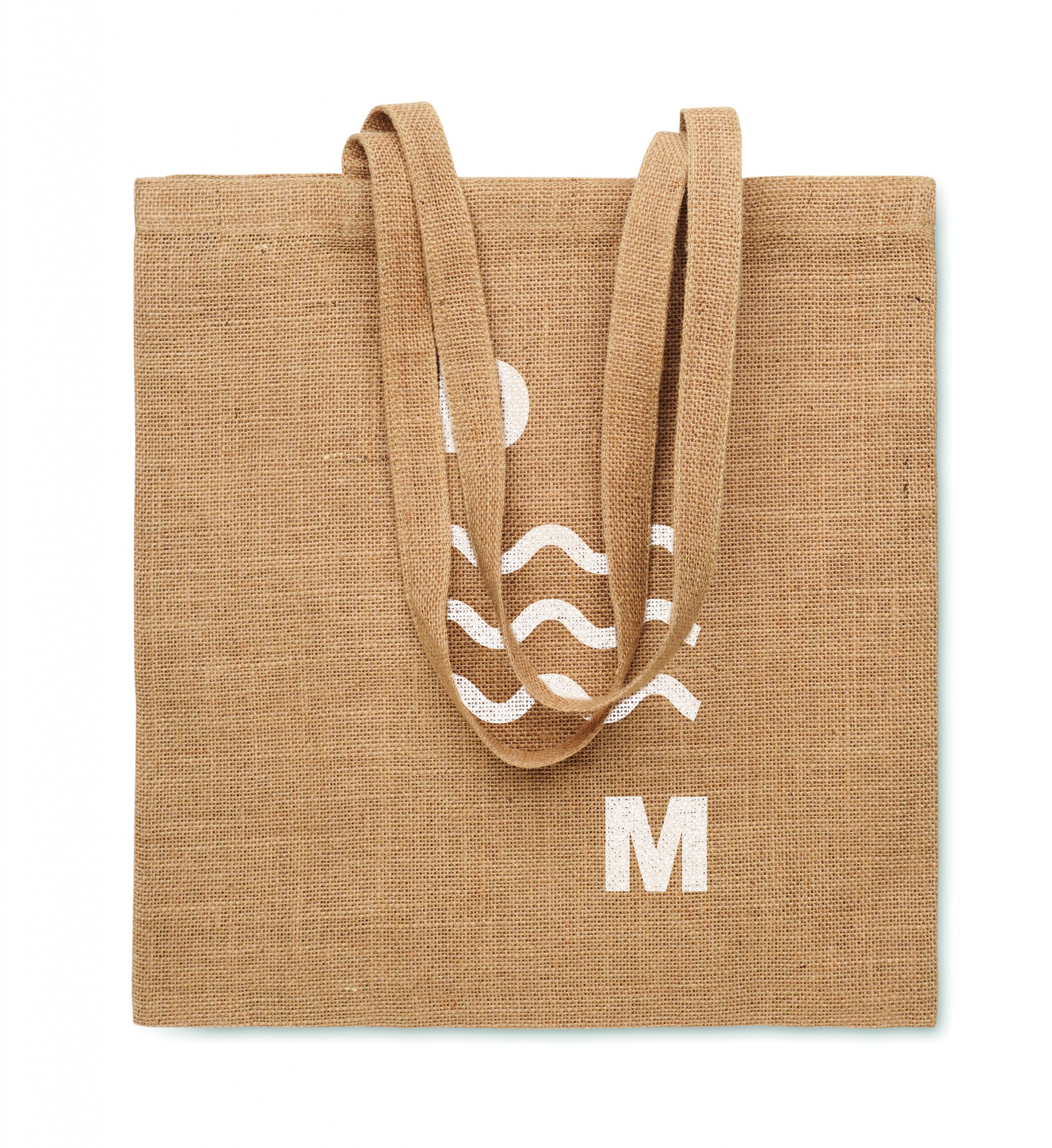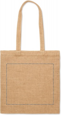 Джутовая сумка для покупок с длинными ручками.