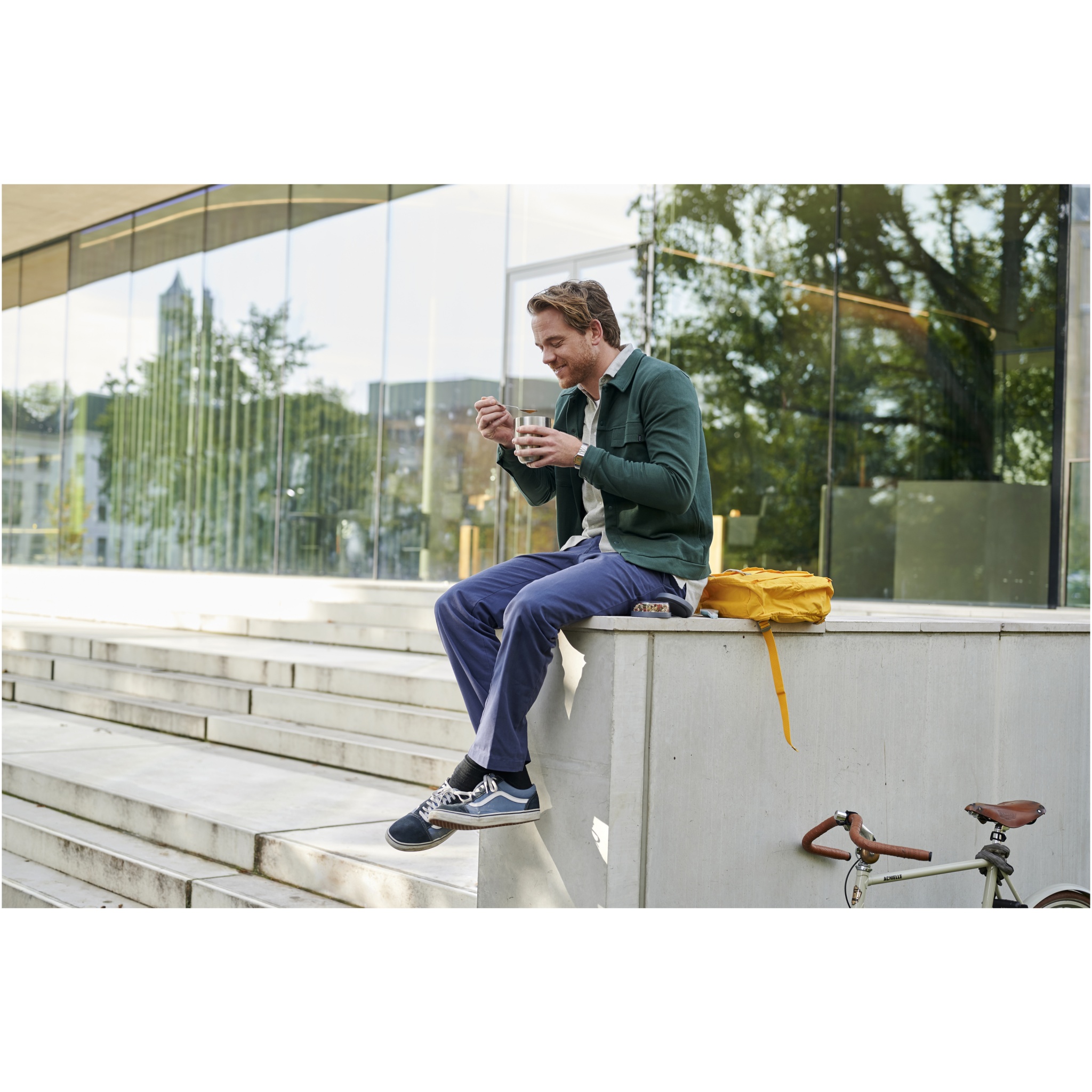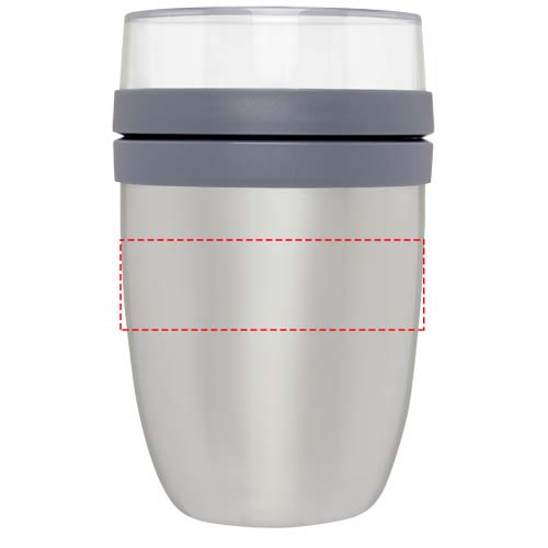 Термоизолированный ланч-бокс с двумя раздельными отделениями, позволяющими хранить различные продукты отдельно друг от друга. Оба контейнера имеют отдельную крышку, чтобы ингредиенты не смешивались. Пища останется горяей в течение 10 часов и холодной в течение 16 часов. Для того чтобы пища оставалась горячей или холодной как можно дольше, рекомендуется перед наполнением ополаскивать ланч-бокс горячей или ледяной водой. Объем верхнего прозрачного контейнера составляет 200 мл, что соответствует примерно 75 граммами твердой пищи. Емкость нижнего контейнера составляет 500 мл. Ланч-бокс изготовлен из прочного материала, его внешняя поверхность остается прохладной и сухой. Рекомендуется мыть вручную. Пластиковые части крышки можно мыть в посудомоечной машине. Герметичный. Не содержит БФА.
