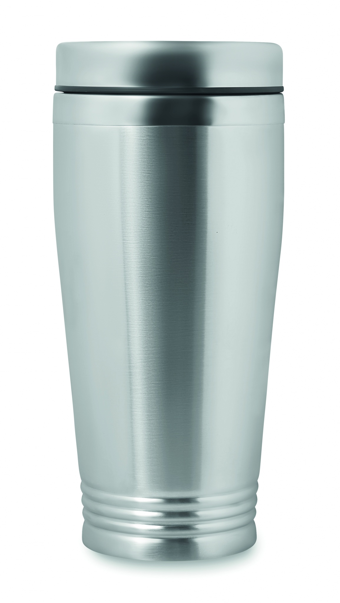 Термокружка с двойными стенками из нержавеющей стали с пластиковой крышкой.