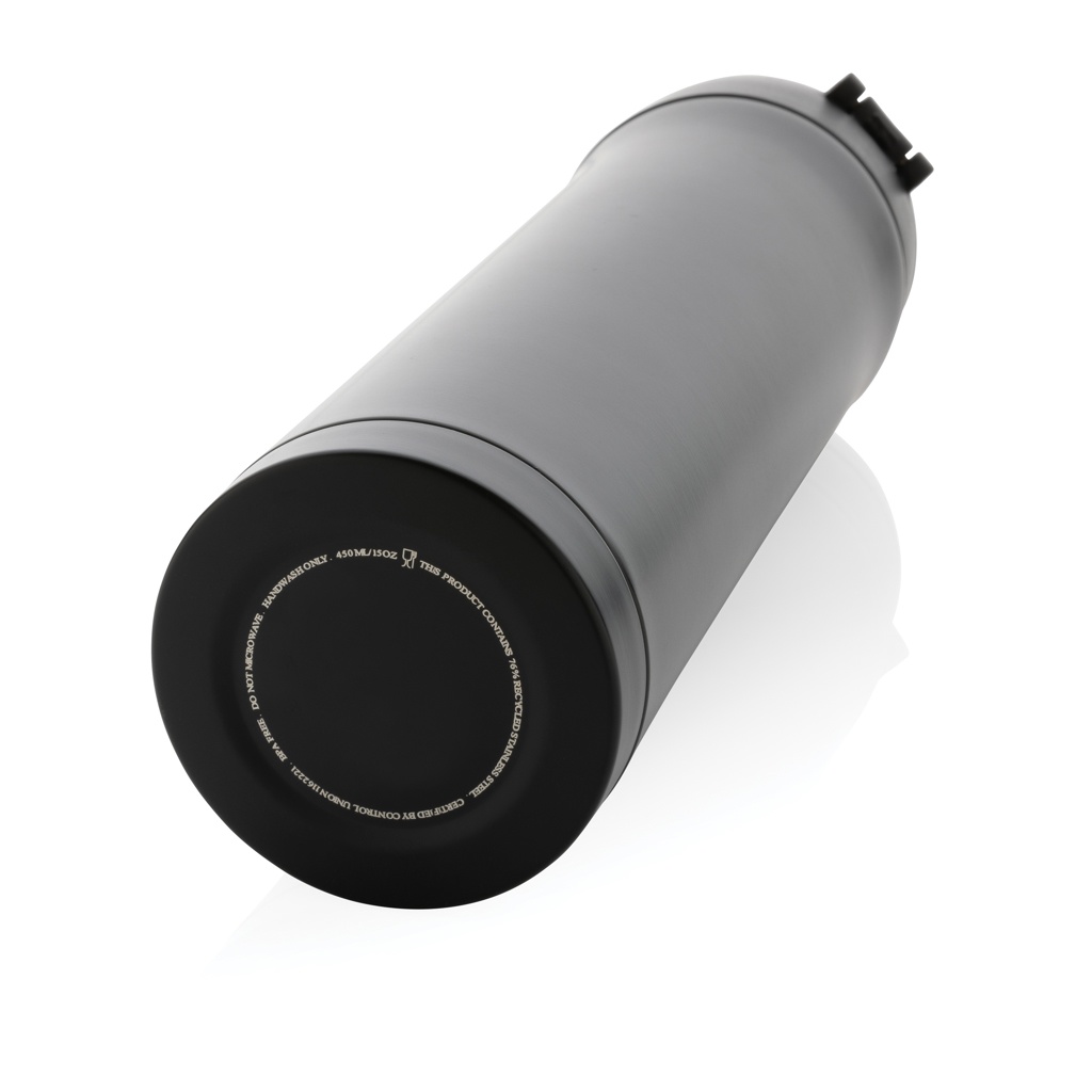 Эта отличная термос из нержавеющей стали с двойными стенками сохраняет ваш напиток теплым до 5 часов или холодным до 15 часов. Крышка запирается, что исключает риск протечки или разливания. Крышку легко содержать в чистоте для оптимальной гигиены и можно мыть в посудомоечной машине. Уникальный дизайн термоса позволяет удобно и безопасно пить одной рукой прямо из термоса. Размер термоса подходит для размещения в любом автомобильном держателе для напитков. Изготовлено из переработанных материалов, сертифицированных по стандарту RCS (Recycled Claim Standard). Сертификация RCS гарантирует полностью сертифицированную цепочку поставок переработанных материалов. Общее содержание переработанных материалов: 76% от общего веса изделия. Не содержит бисфенол А. Емкость 450 мл. Включая крафт-упаковку, сертифицированную FSC®.