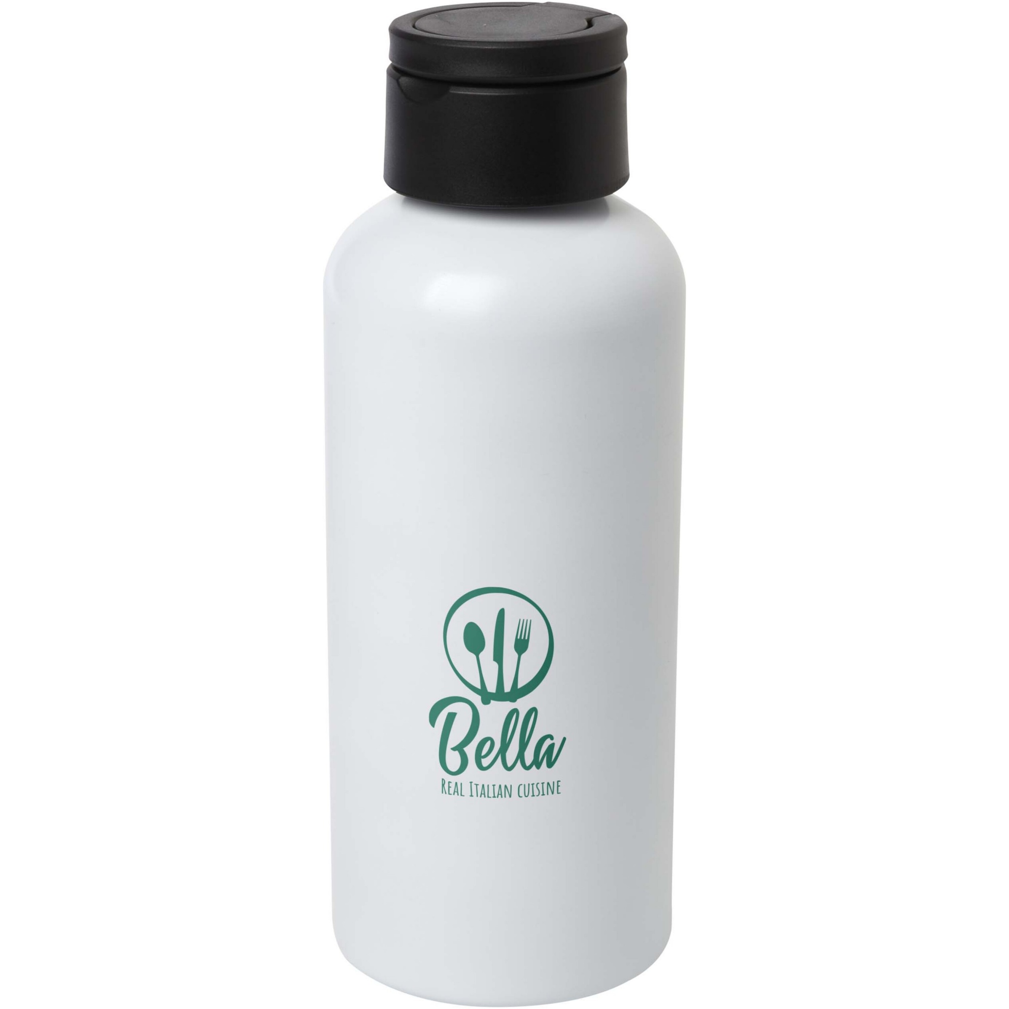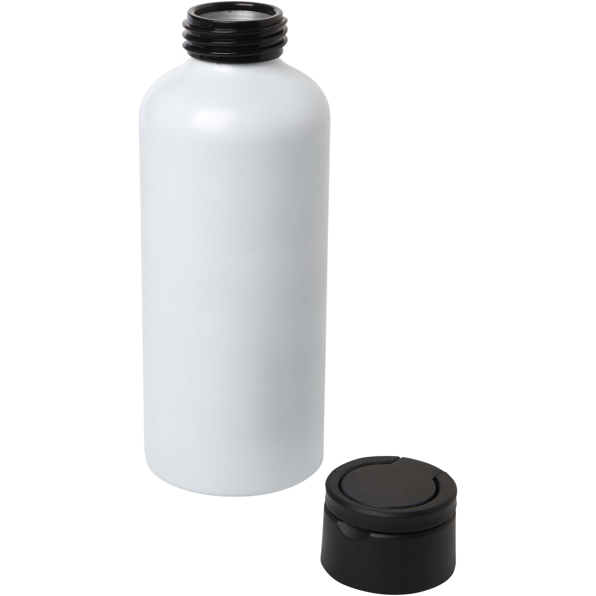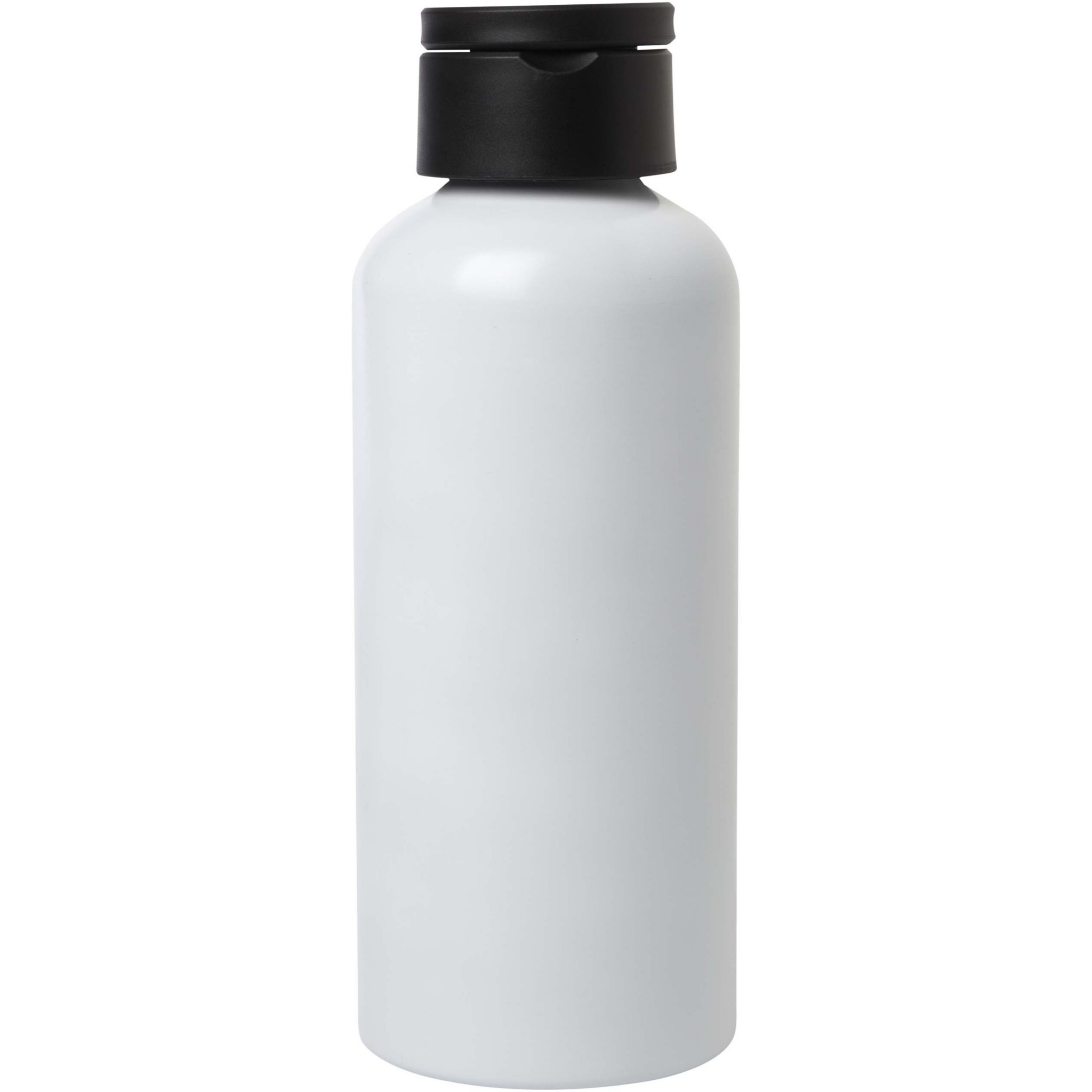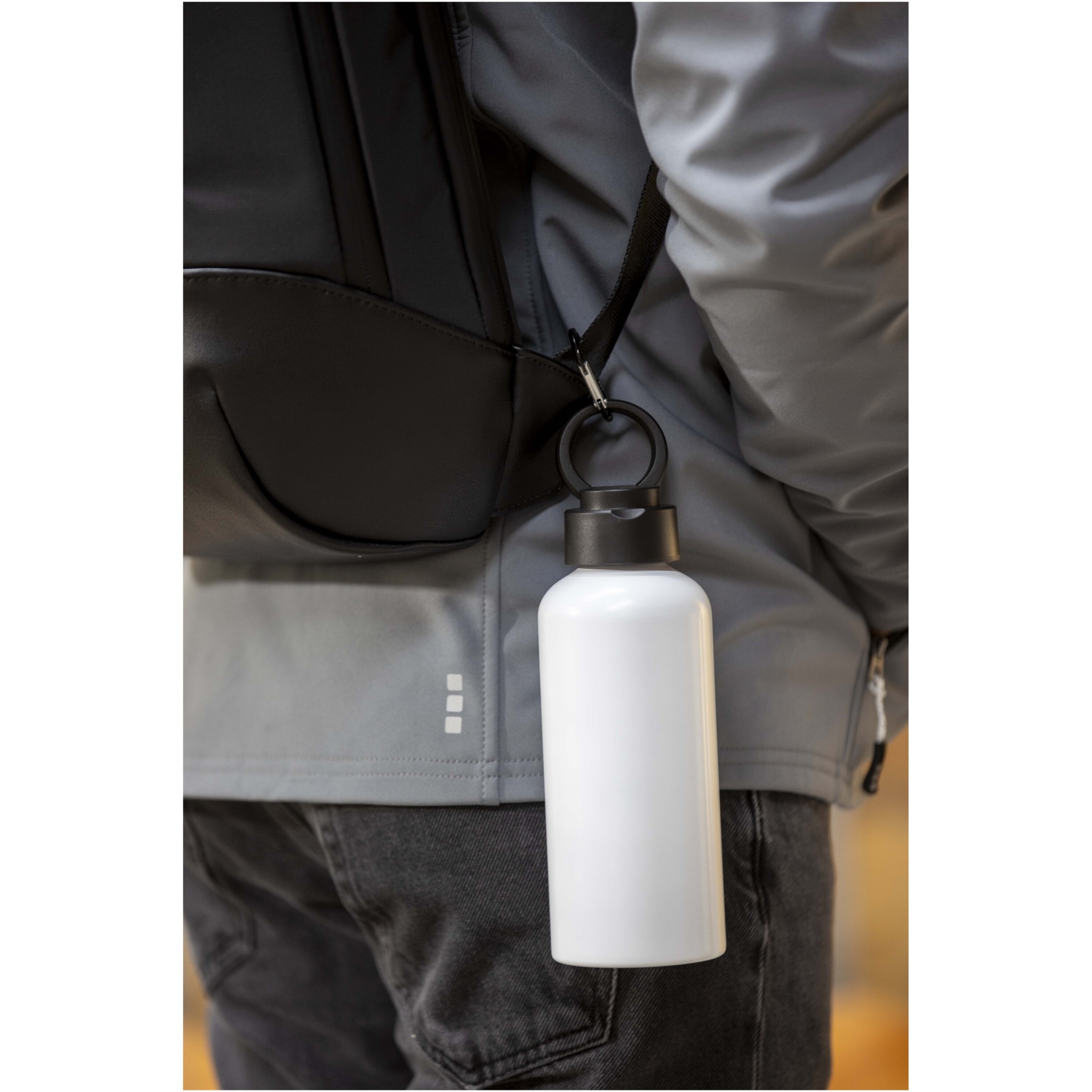 Бутылка для воды из переработанного алюминия, сертифицированного согласно RCS, с элегантным дизайном. Имеет крышку из переработанного пластика с отдельной петлей для переноски. Легкая и удобная для переноски. Объем: 600 мл.
