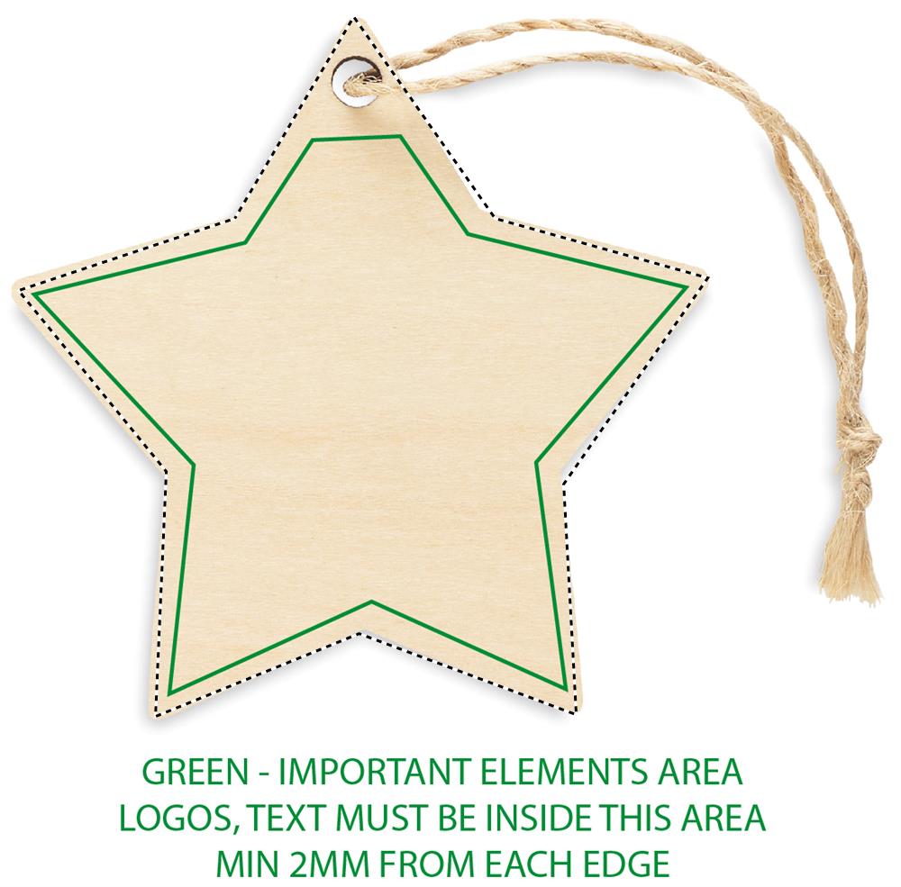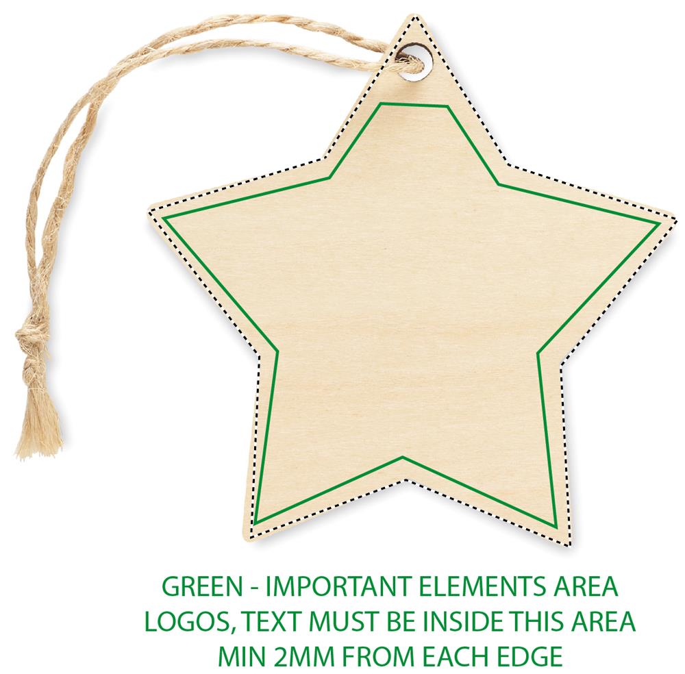 Рождественское украшение из фанеры для сублимации на джутовой тесьме в форме звезды. Нанесение белым цветом не возможно.