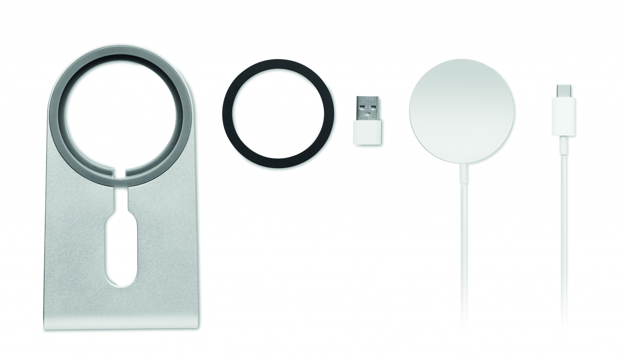 Б/п зарядка 15 Вт на магните с подставкой для телефона. Включает металлическое кольцо для зарядки дополнительных устройств, поддерживающих функции б/п зарядки. Выход:9В/1,67 А(15 Вт) для быстрой зарядки. Совместимо с последними Androids, iPhone® 12 и новее.
