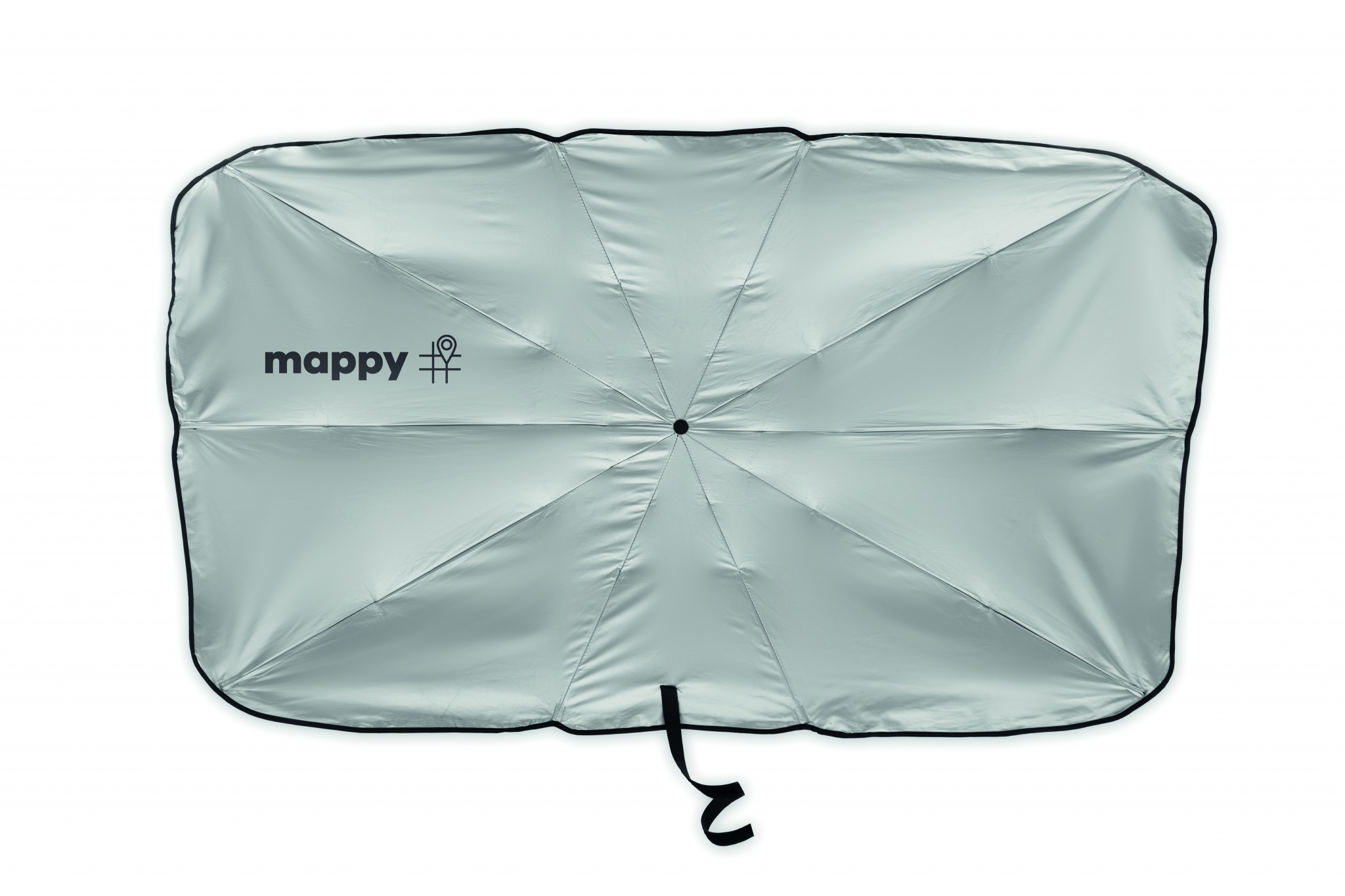 Автомобильная защита-зонт от солнца на лобовое стекло из эпонжа 190T с подкладкой с одной стороны. Ручное открытие/закрытие.