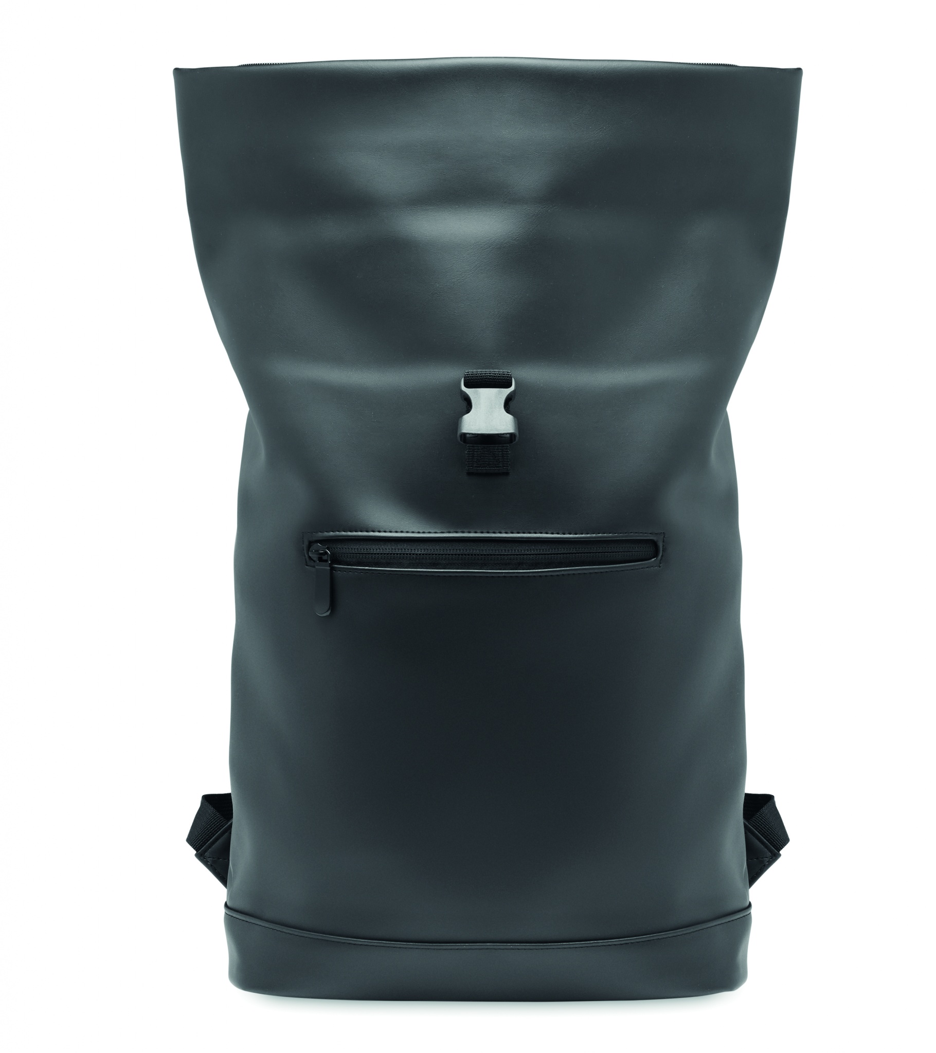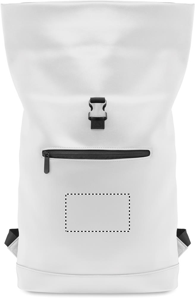 15 tums laptopryggsäck i mjuk PU med vadderad rygg och förstärkt botten. Stor ficka med dragkedja på framsidan. Fodret är av 210D RPET.