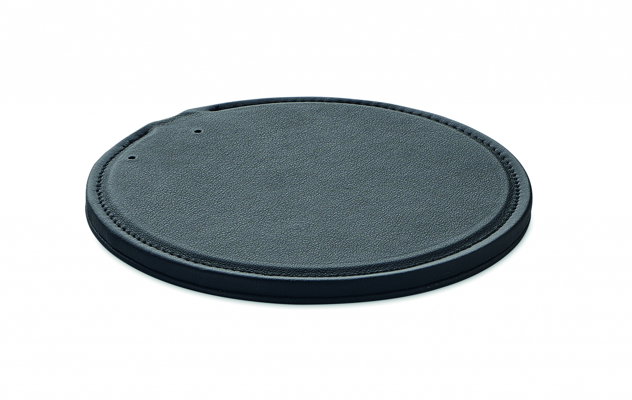 Trådlös laddare i återvunnen PU. Tillverkad av 58% återvunnet material (40% återvunnen polyester och 18% återvunnen PU). Utgång: DC 9V/1,67A (15W) för snabbladdning. Kompatibel med alla QI-aktiverade enheter som senaste Androids, iPhone® 12, X och nyare.