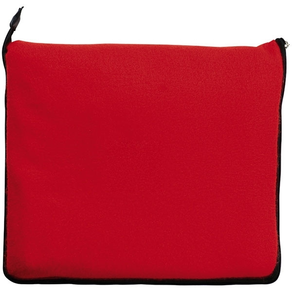 Fleecefilt (vikt 170 g/m², storlek: 180 x 120 cm) med dragkedja, som genom att vikas sedan förvandlas till en kudde. Vi broderar din logotyp på filten.