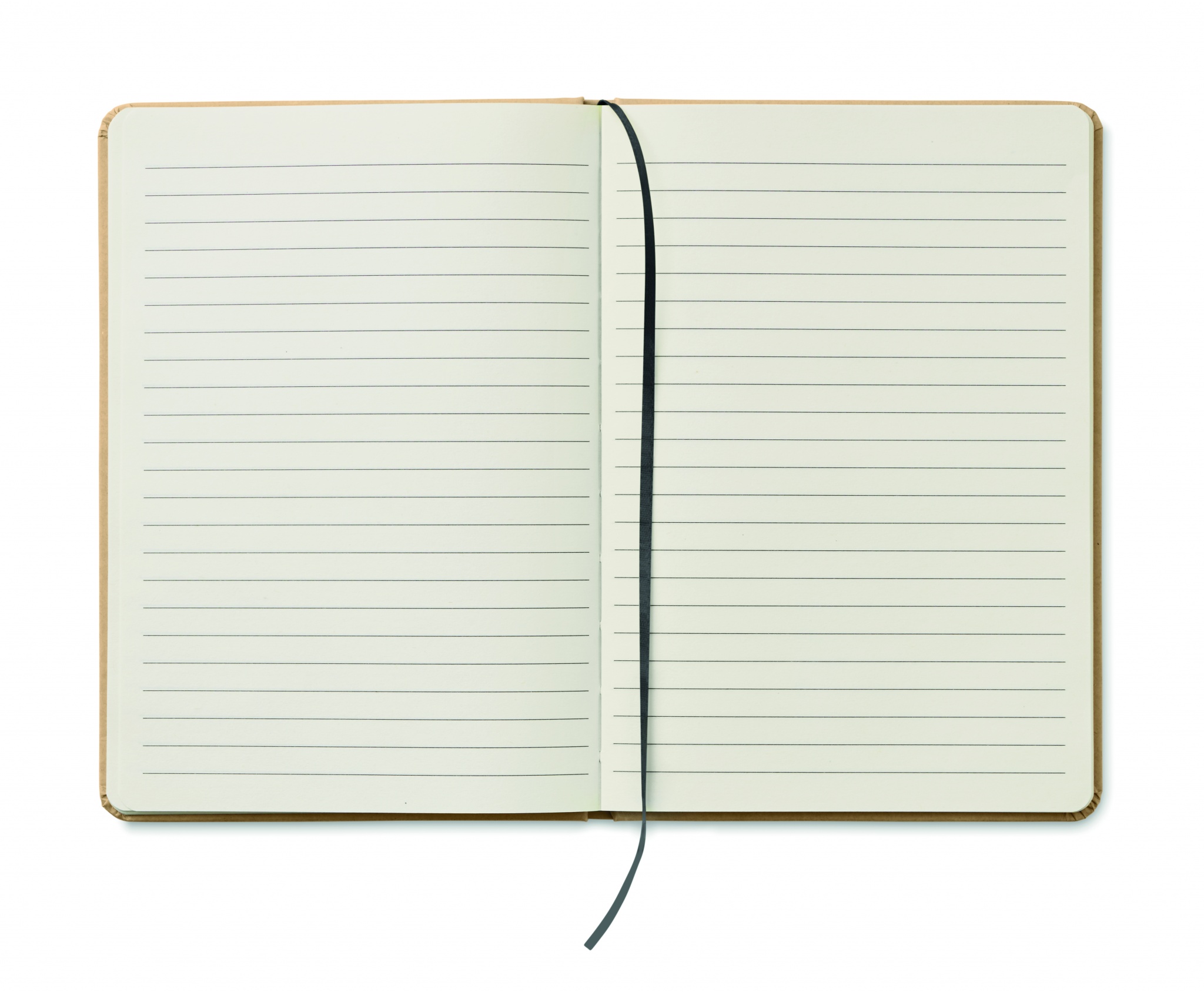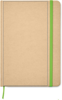 Skrivbok i A5 format av återvunnet material. 80 linjerade sidor, färgmatchat bokmärkes- och elastiskt förslutningsband.