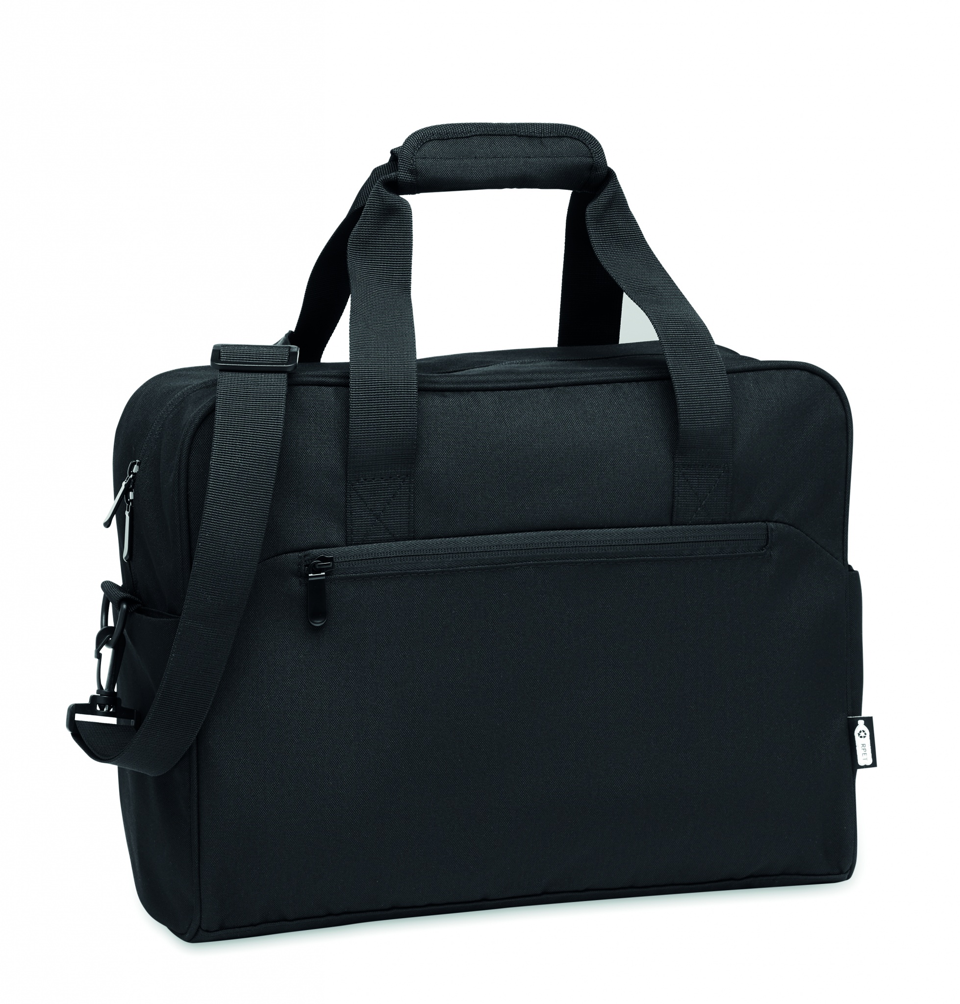 Carry-on handbagage i 600D RPET med stor frontficka med dragkedja, två små sidofickor. Har 15'' laptop-fack. Vadderad, avtagbar och justerbar axelrem. Rem för att fästa på trolley.