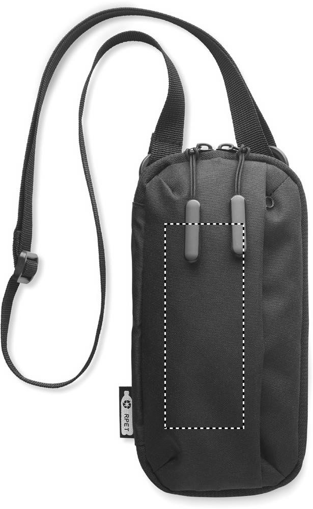 Mobilväska i 300D RPET-polyester med justerbar rem. Fickor med dragkedja på framsidan och i sidorna. Huvudfack har flera fickor.