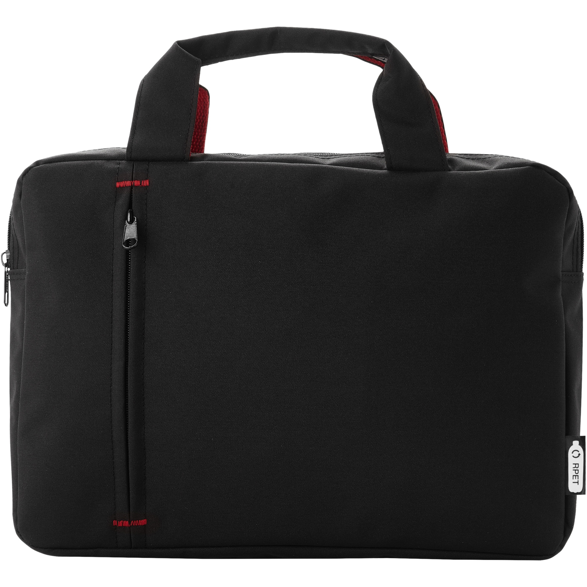 Konferensväska av återvunnen PET-plast med ett huvudfack med blixtlås och en blixtlåsficka på framsidan, med förstärkta bärhandtag på ovansidan och trendiga färgkontrastelement.