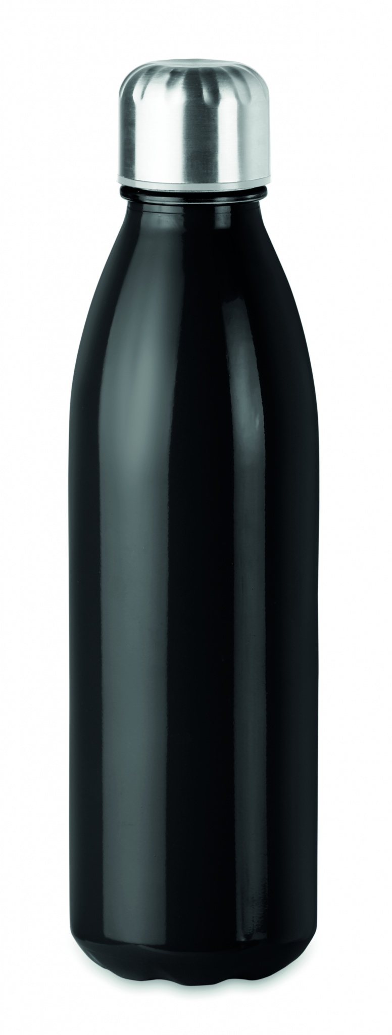 Drickflaska i glas med lock av rostfritt stål. Kapacitet: 650 ml. Läckagefritt.