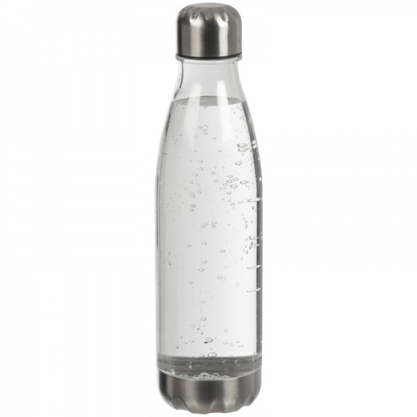 Läcksäker dricksflaska (kapacitet 700 ml) gjord av plast med lock och botten i rostfritt stål. Din logotyp kommer att tryckas på flaskan. Gravering på locket möjlig på begäran.