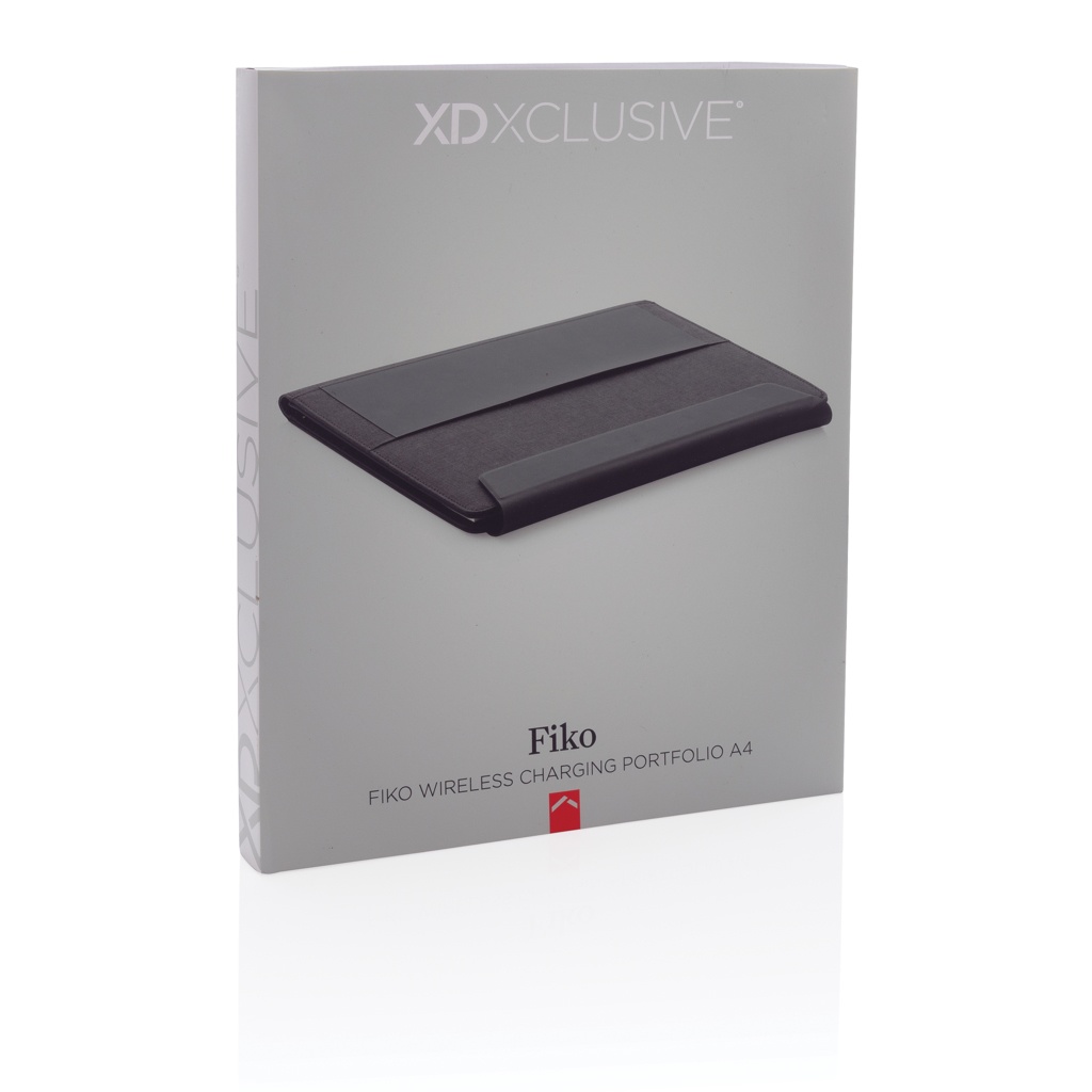 Fiko A4 portfolio med 5W trådlös laddning och powerbank, svart