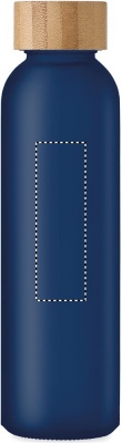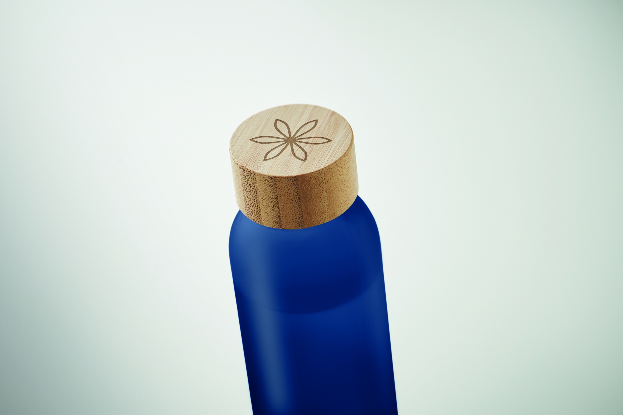 Glasflaska med matt yta och lock av bambu. Läcker inte. Volym: 500 ml.