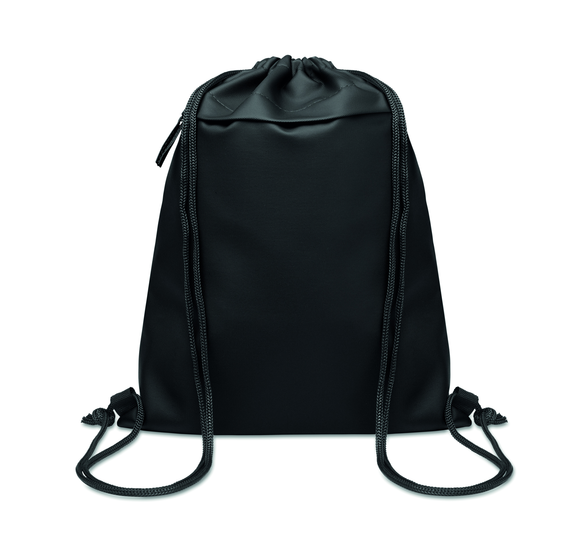 Gymnastikpåse med PU-belagd 600D RPET-polyester och foder av 190T RPET-polyester. Ficka med dragkedja på framsidan.