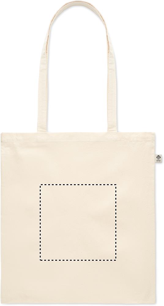 Kasse i ekologisk bomull med långa handtag. 180 gr/m².
