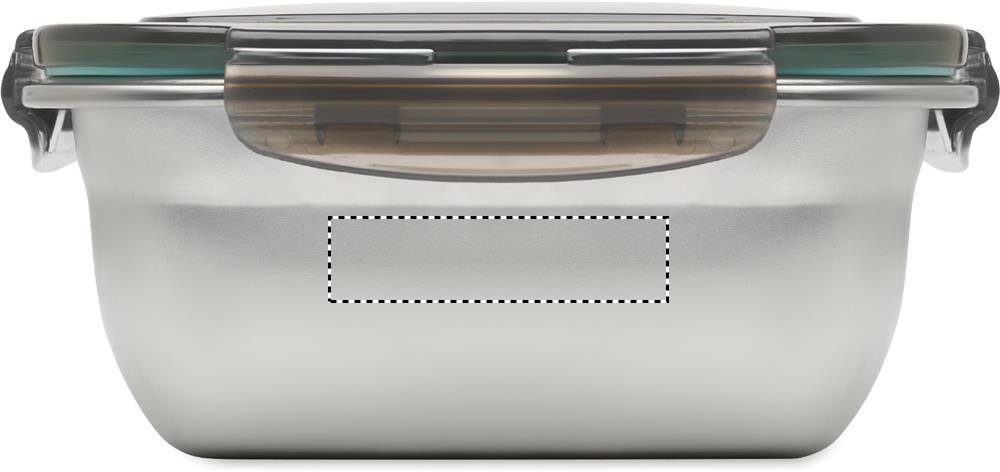Lunchlåda i återvunnet rostfritt stål med lock i återvunnen PP och 4 spännen, ett på varje sida. Inklusive skiljevägg. Volym: 1500 ml.