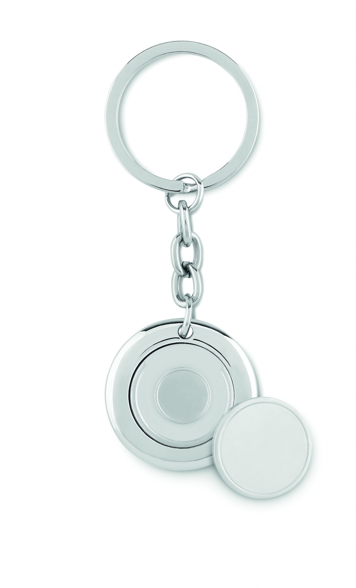 Nyckelring i metall med kundvagnspollett. OBS! Polletten har Euro myntets storlek