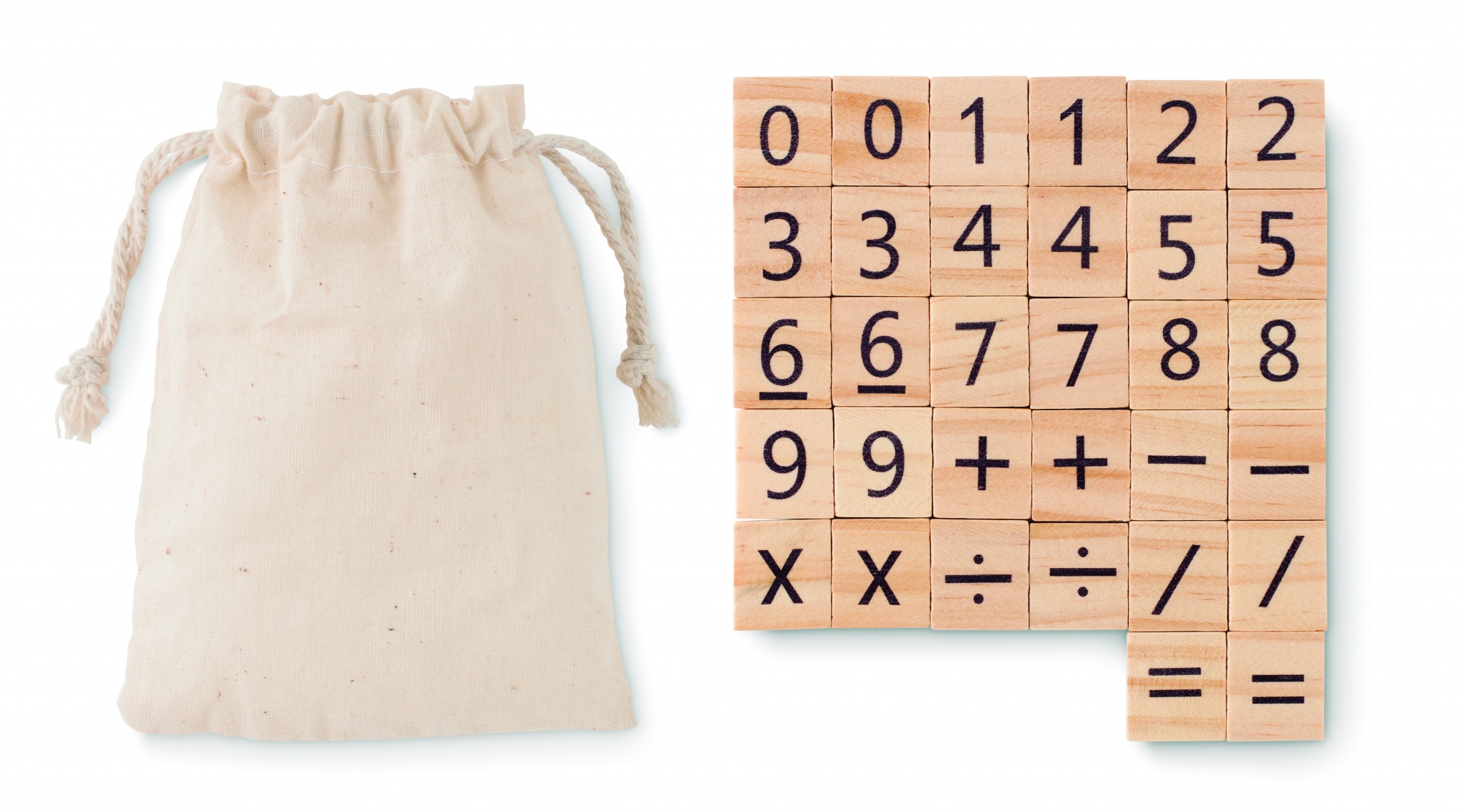 Pedagogiskt räkne spel i trä. Kul sätt att lära barn i olika åldrar att bekanta sig med siffror på ett lekfullt sätt. Kommer med bomullspåse. Innehåller 32 bitar.
