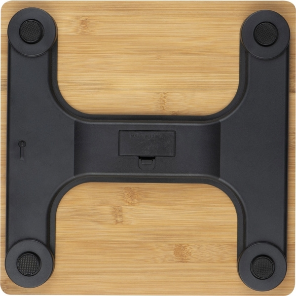 Digital personlig våg i bambu med en maximal lastvikt på 150 kg. Aviseringarna kan visas i kg/lb/st. Din logotyp kommer att graveras på skalan.