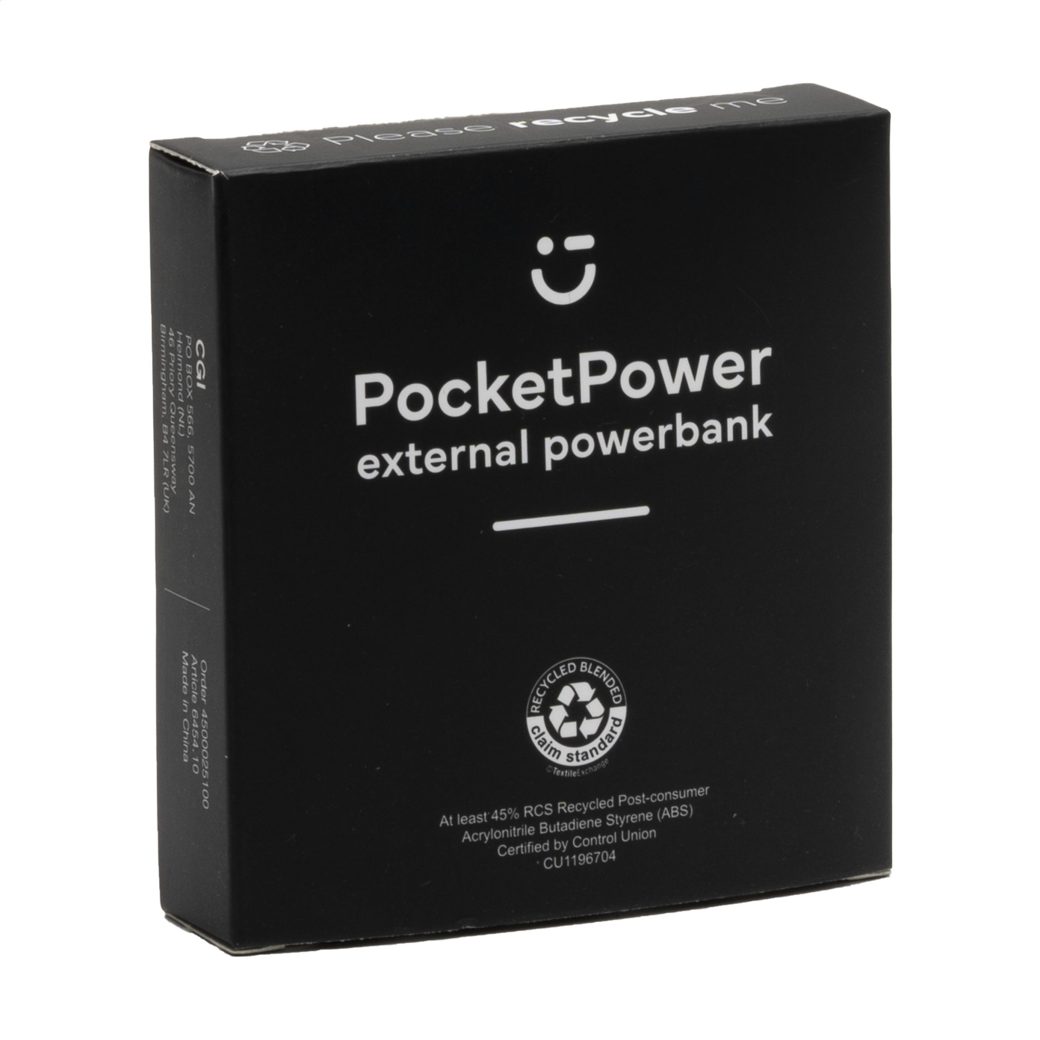 Logotrade reklamprodukter bild: PocketPower 5000 RCS återvunnen Powerbank