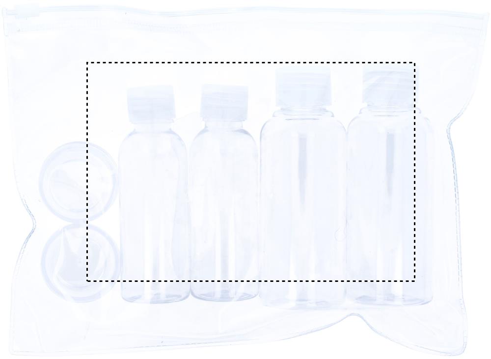 Resefodral med 6 tomma flaskor. Flaskorna är flygplansgodkända som handbagage. Fodralet är återförseglingsbart för TSA-vänligt resande.