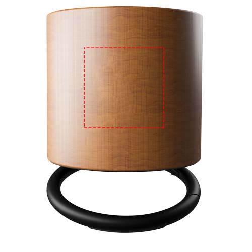 3 W Bluetooth-högtalare i lönnträ med snidad logotyp och dubbel ljudutgång för oöverträffad ljudkvalitet i denna storlek. Ringhögtalaren kan lutas för att styra ljudet i valfri riktning. Har inbyggd mikrofon och telefonkonferensfunktion. Kapacitet: 500 mAh - 3,7 V batteri. Frekvens: 50 Hz - 20 KHz. Ljudutgång: 1 x 3 W. Impedans: 4 Ω. Bluetooth® 5.0. Nettovikt: 100 gram. Storlek: ∅ 50 mm x 45 mm. Levereras i en presentask av återvunnet papper med magnetstängning.