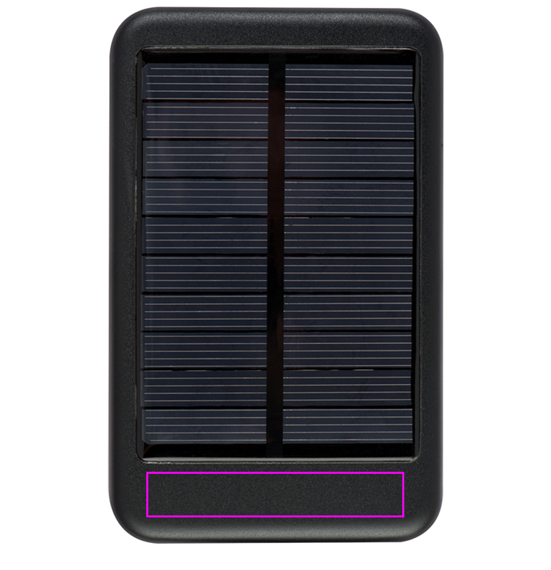 Solenergibank (utrustad med 20 solpaneler) gjord av metall med 4 000 mAh kapacitet och USB-laddningskabel. Så du kan ladda din smartphone eller surfplatta när du är på språng och utan eluttag. Vi kommer att trycka din logotyp under solfältet.