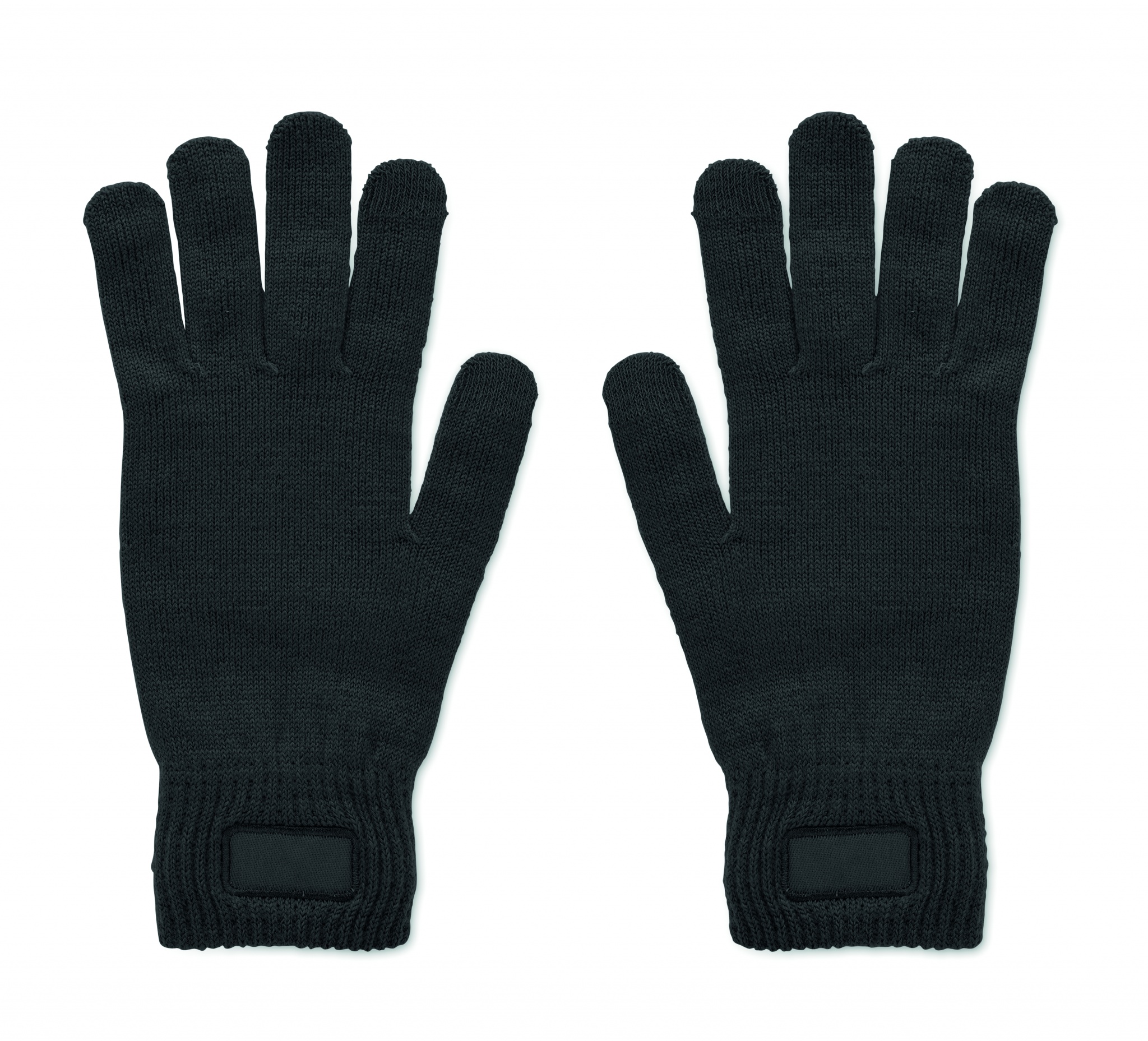 Stickade handskar i mjuk, töjbar RPET-polyester med märke.