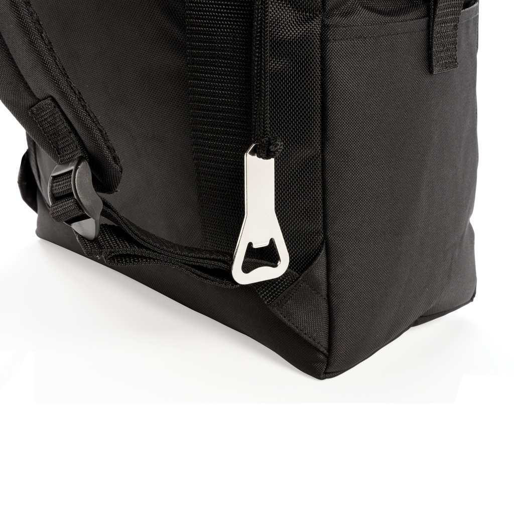 Deluxe 1680D och 600D polyester kylryggsäck med extra stort blixtlåsförsett huvudfack och frontfack med blixtlås. Dubbelförstärkta bärhandtag. Inklusive flasköppnare. Med plats för upp till 28 burkar. PEVA isolering.