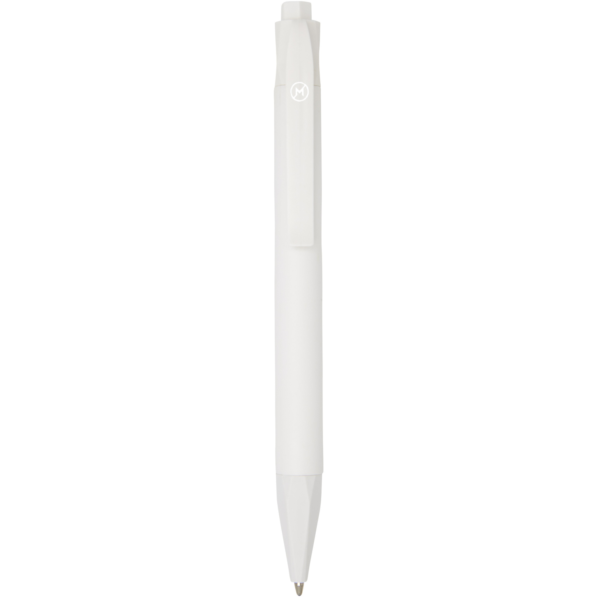 Klickfunktion, håller länge och påfyllningsbar kulspetspenna producerad från 100 % PLA (majsplast) vilket minskar mängden plast som används. Inkluderar en påfyllning med en skrivlängd på cirka 2 000 meter. Pennan levereras med en refill med blått bläck. Packad i ett kartonghölje för penna.